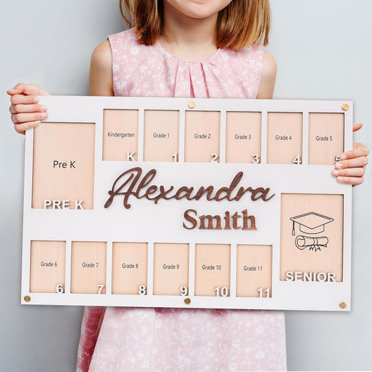 School Picture Frame Pre-K to 12 - Kindergarten to 12th Grade Memory Frame, K-12 Picture Frame, Custom School Years Picture Frame, Ideal School Gift & Home Decor, 14 Photo