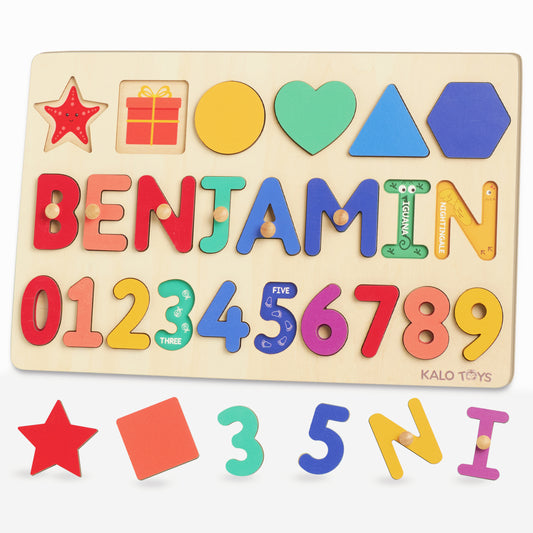 Personalized Wooden Shaped & Numbers Name Puzzle, Gifts For 1 2 3 Year Old, Wooden Name Puzzle For Kids, Montessori Toys | Kindly Toys NP20