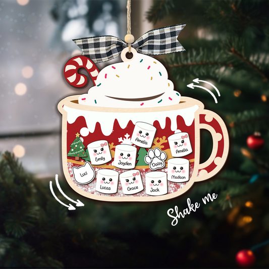 4D Shake Family Ornament with Pets, Custom Marshmallow Shaker Ornament, Personalized Family Christmas Ornament 2025 Keepsake
