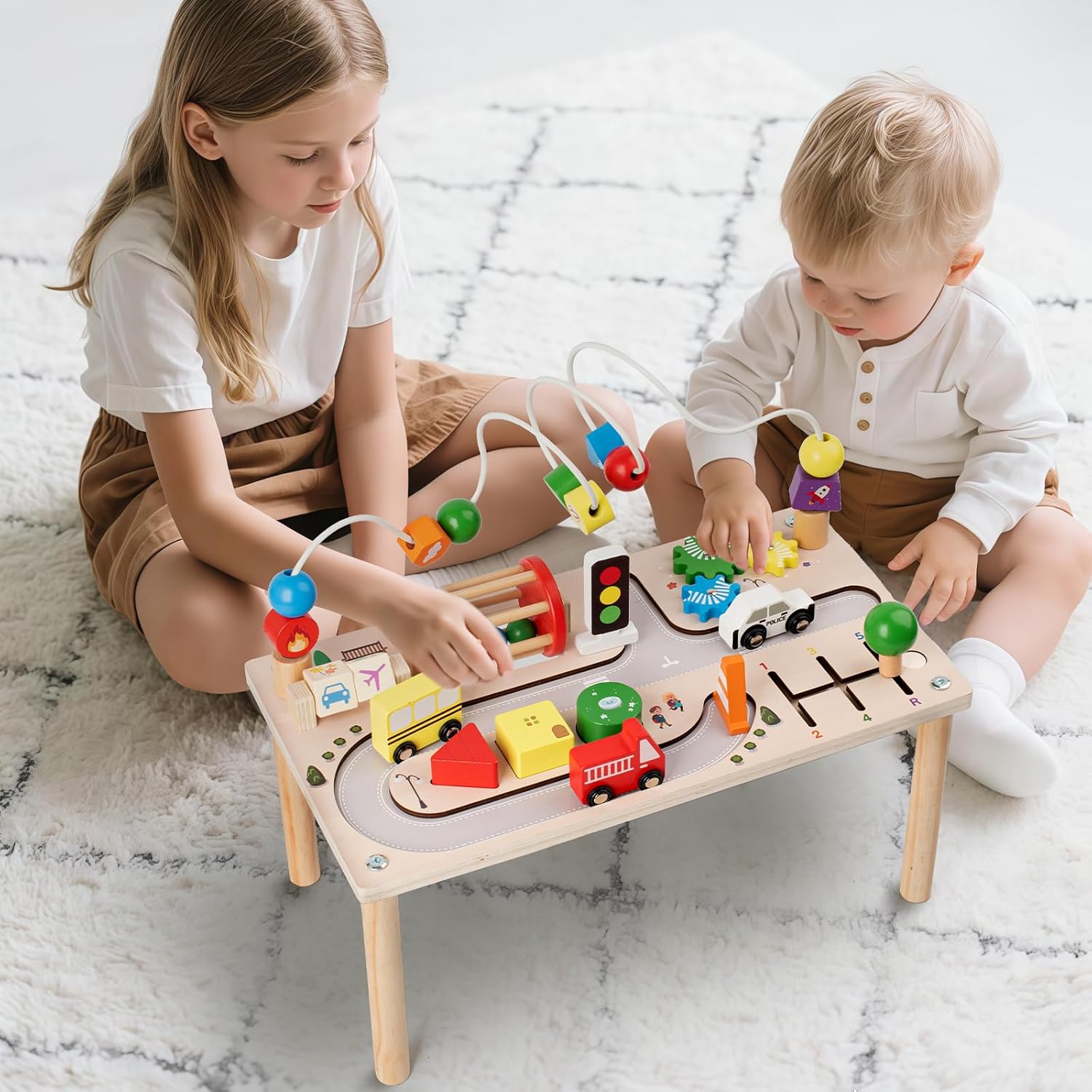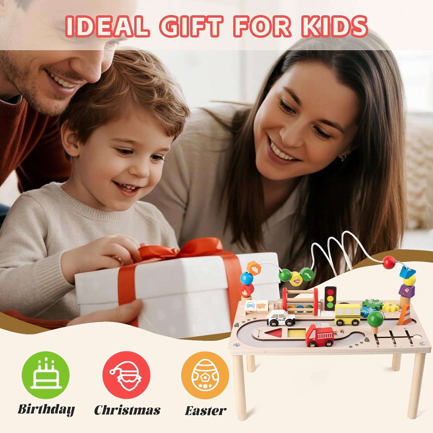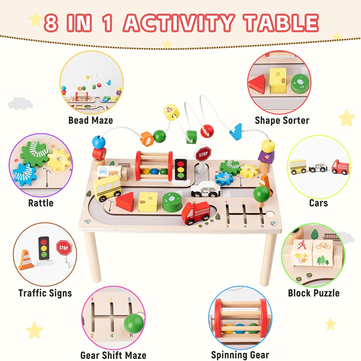 🚗 8-in-1 Montessori Wooden Activity Table for Toddlers (Ages 1–3)
