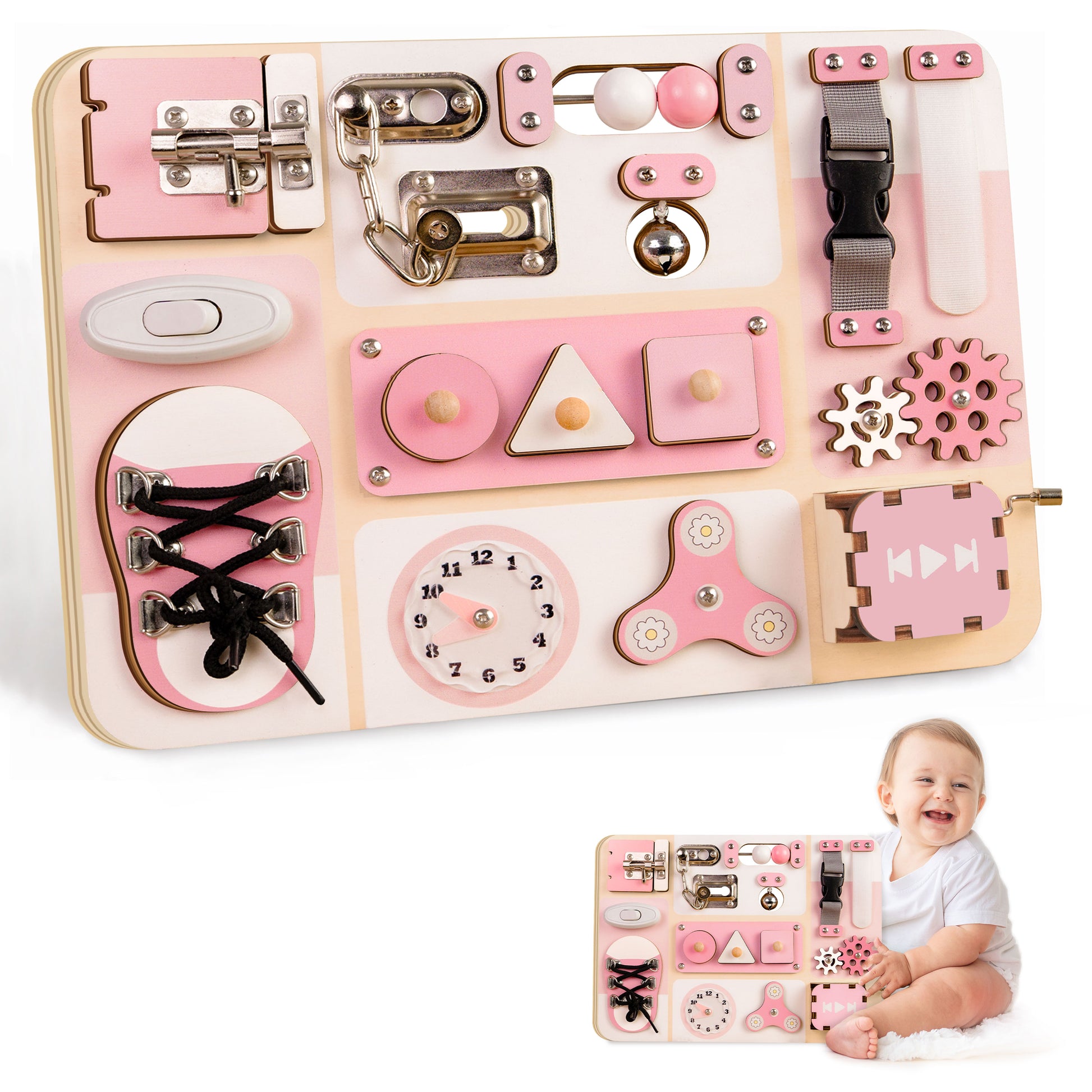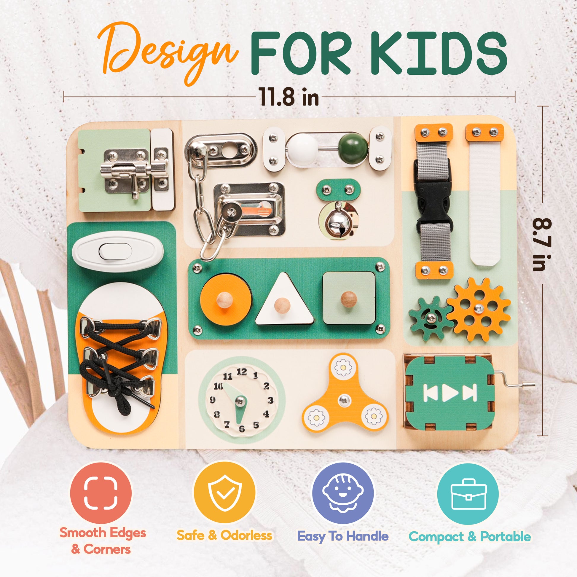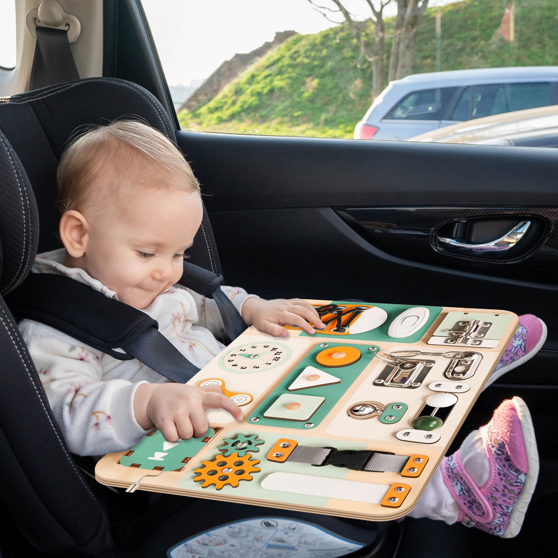 🚗 Perfect for Travel: Lightweight and portable, making it an ideal travel busy board for car rides, flights, or quiet playtime at home.