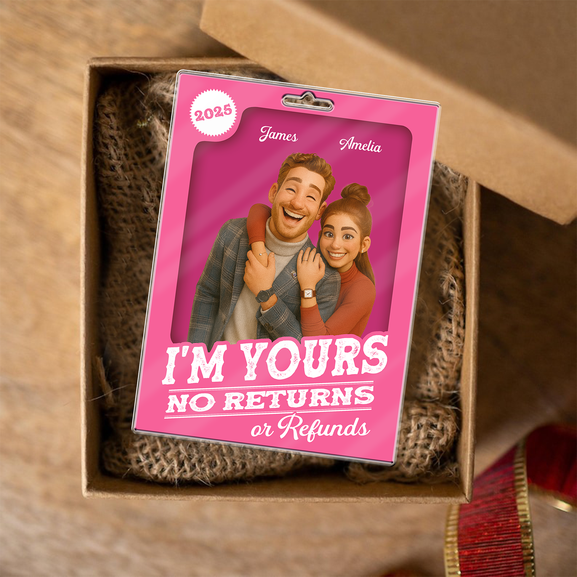 Custom Photo 3D Effect Figure Art Loving Couple, Personalized Couple Photo Acrylic Ornament, Couple 3D Block I'm Yours No Returns Ornament