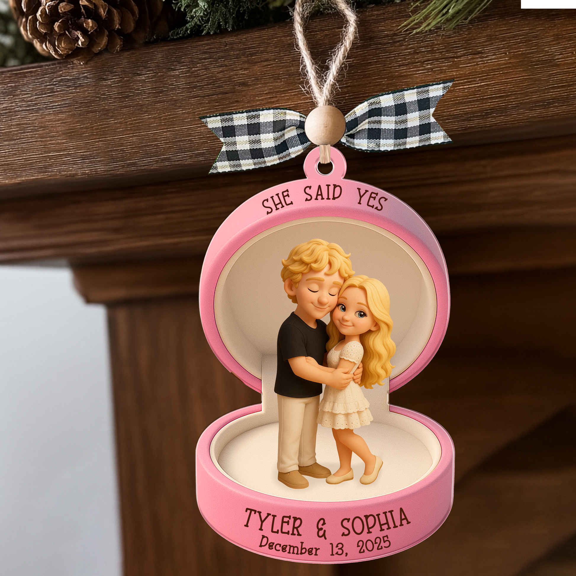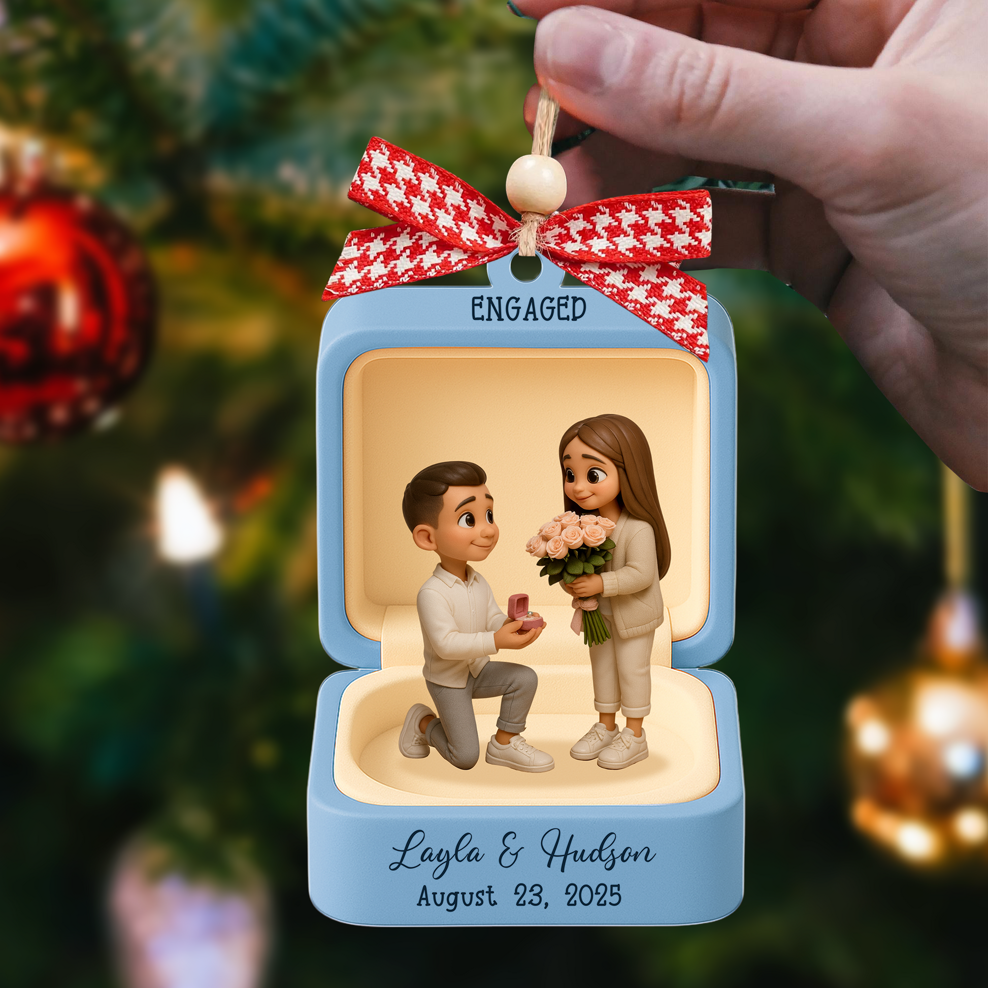 First Christmas Engaged Ornament 2025, Personalized Engagement Ornament with Photo, Custom Proposal Keepsake, Couple Christmas Gift