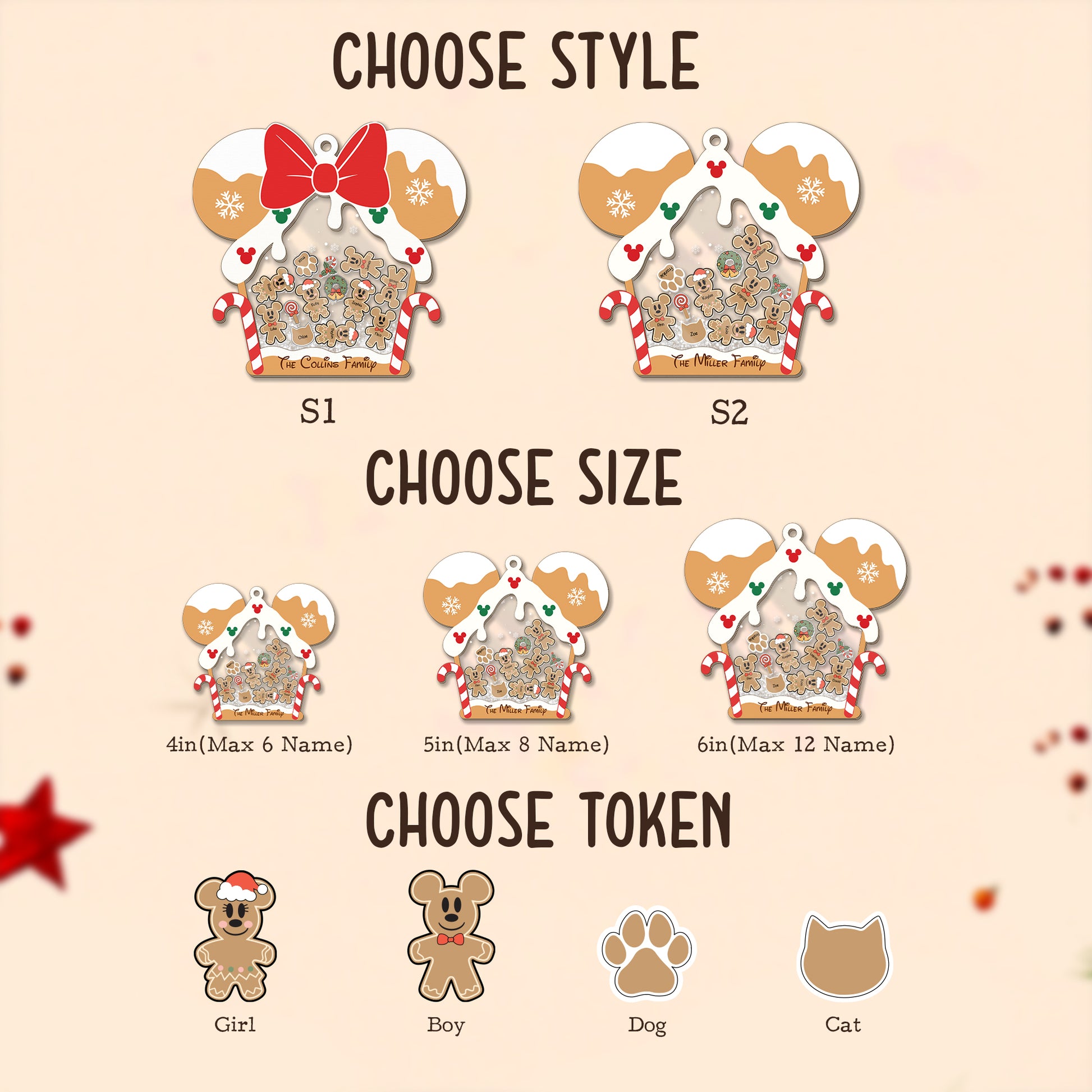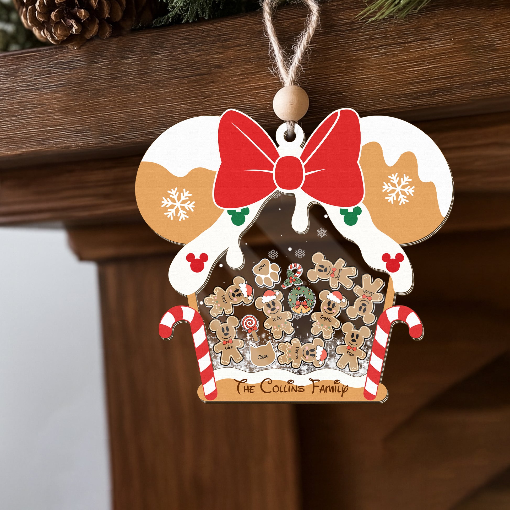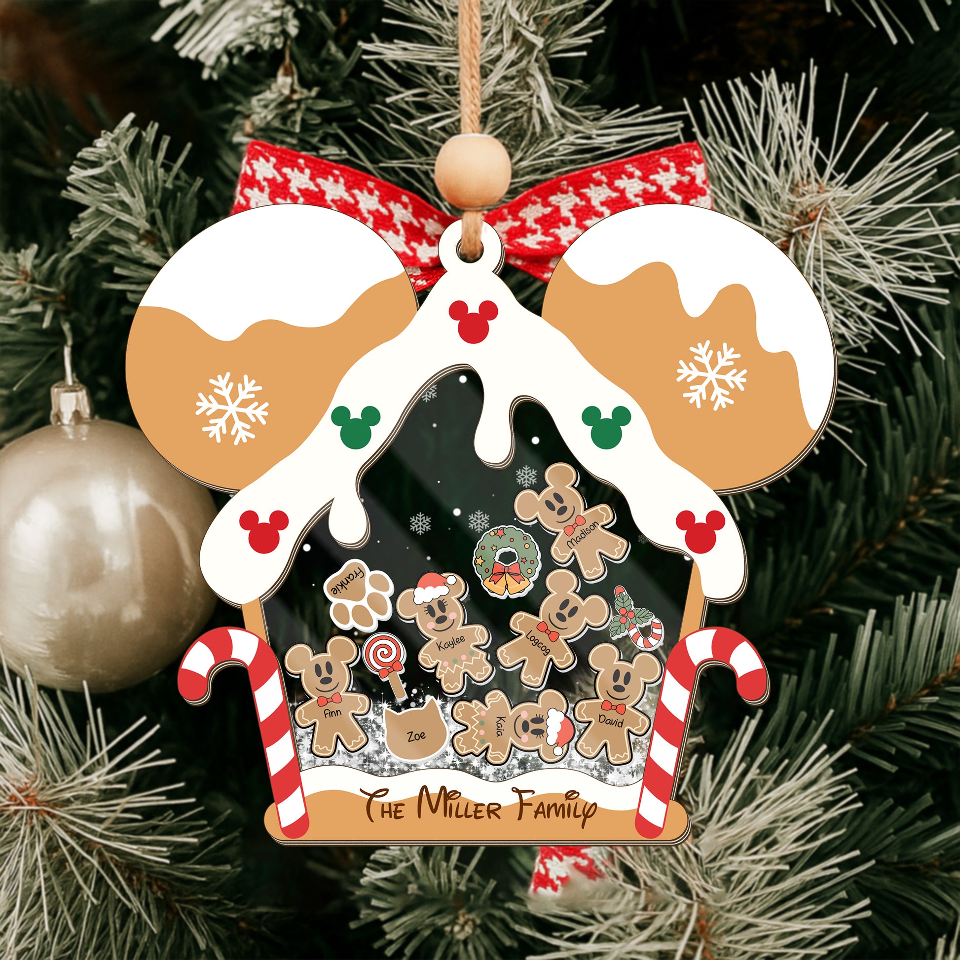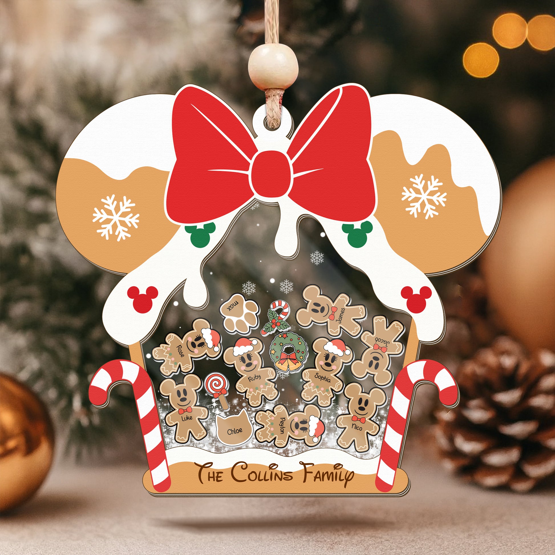 Gingerbread Mouse Family Ornament, Personalized Family Ornaments With Pets, 3 Layer Wooden Ornament