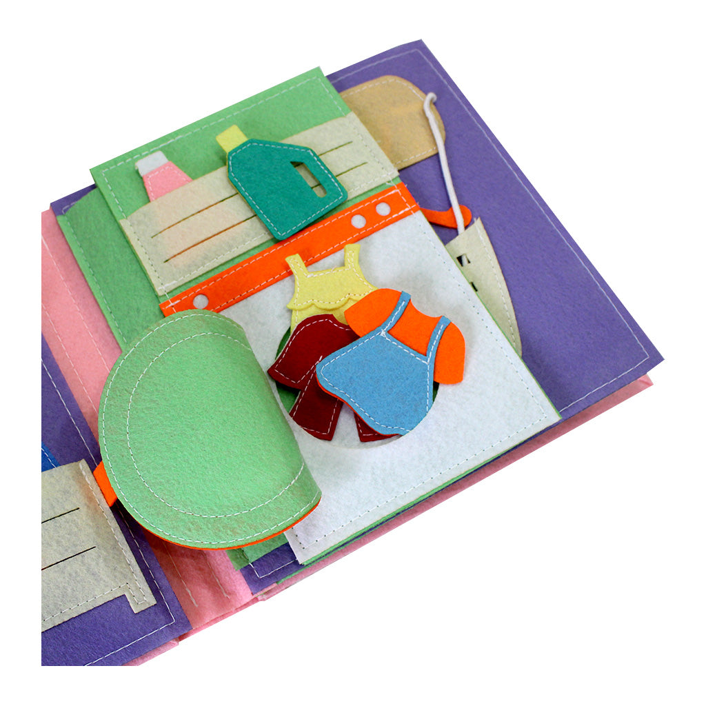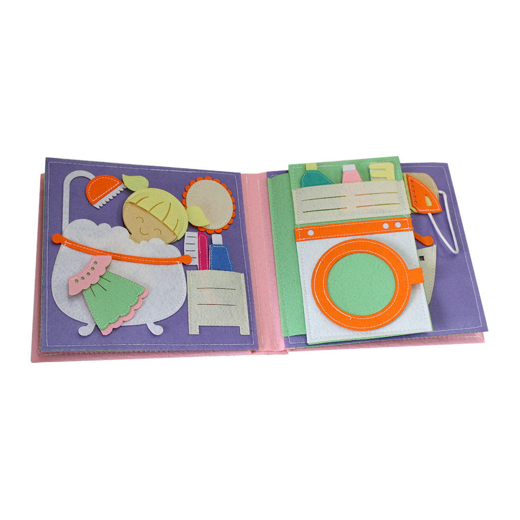 This adorable Montessori Busy Book takes your child through a fun day of daily activities โ from waking up, getting dressed, brushing teeth, to cooking and doing laundry! Made from safe, high-quality felt fabric, every page offers a new world of imagination and hands-on learning.