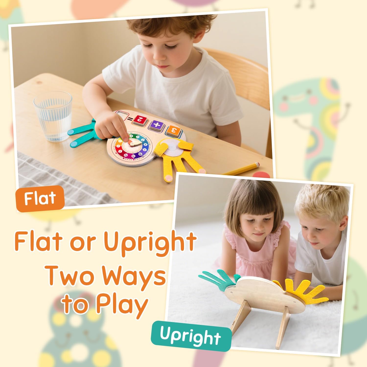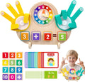 This multifunctional wooden math and time toy helps children explore numbers, operations, and daily routines through hands-on play. With a colorful clock, number blocks, and interactive counting hands, kids develop early math and time-telling skills in one fun, engaging activity board.
