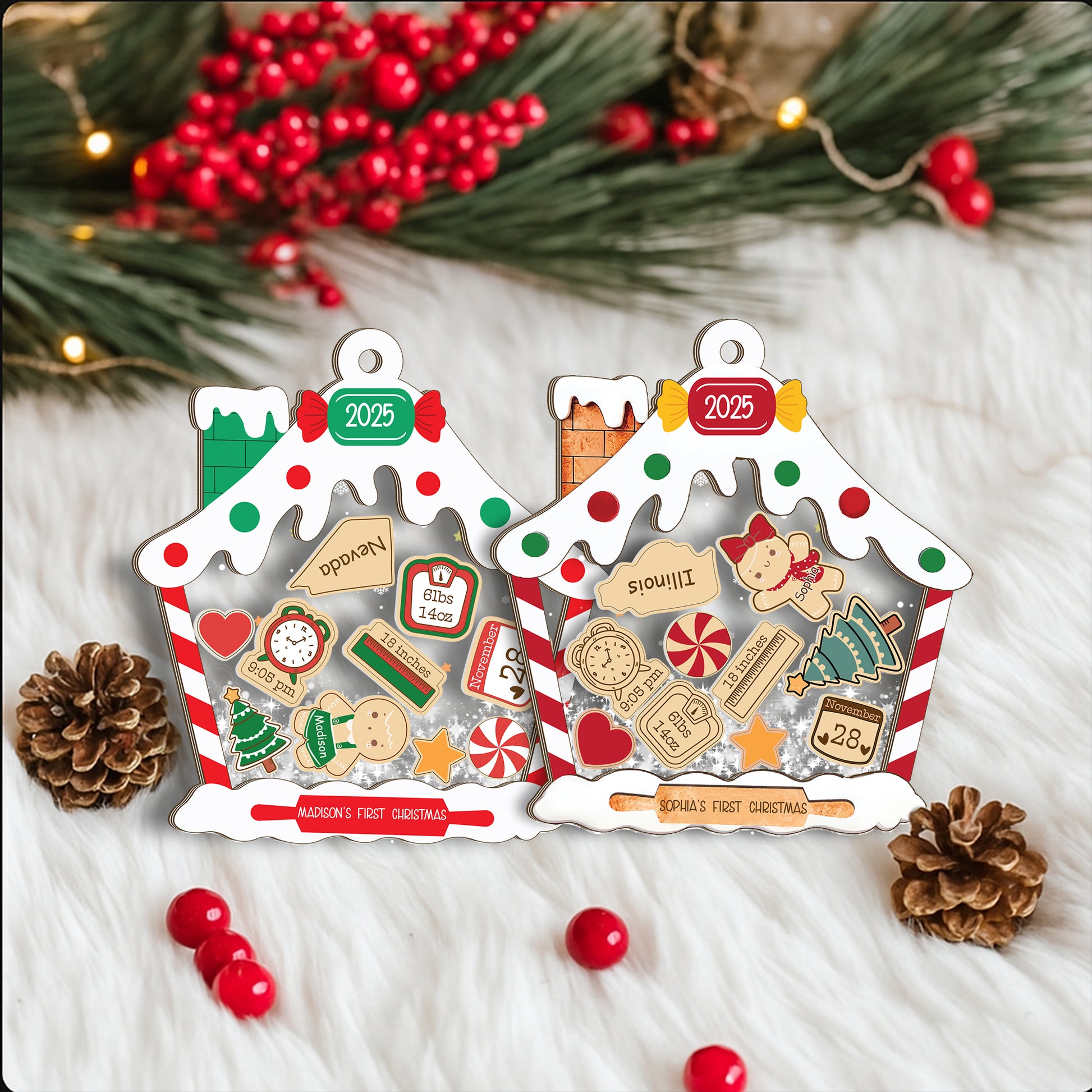 Personalized Baby 1st Christmas Ornament 2025, Custom Birth Stats Keepsake, Baby Shower Gift, 4D Shake Ornament