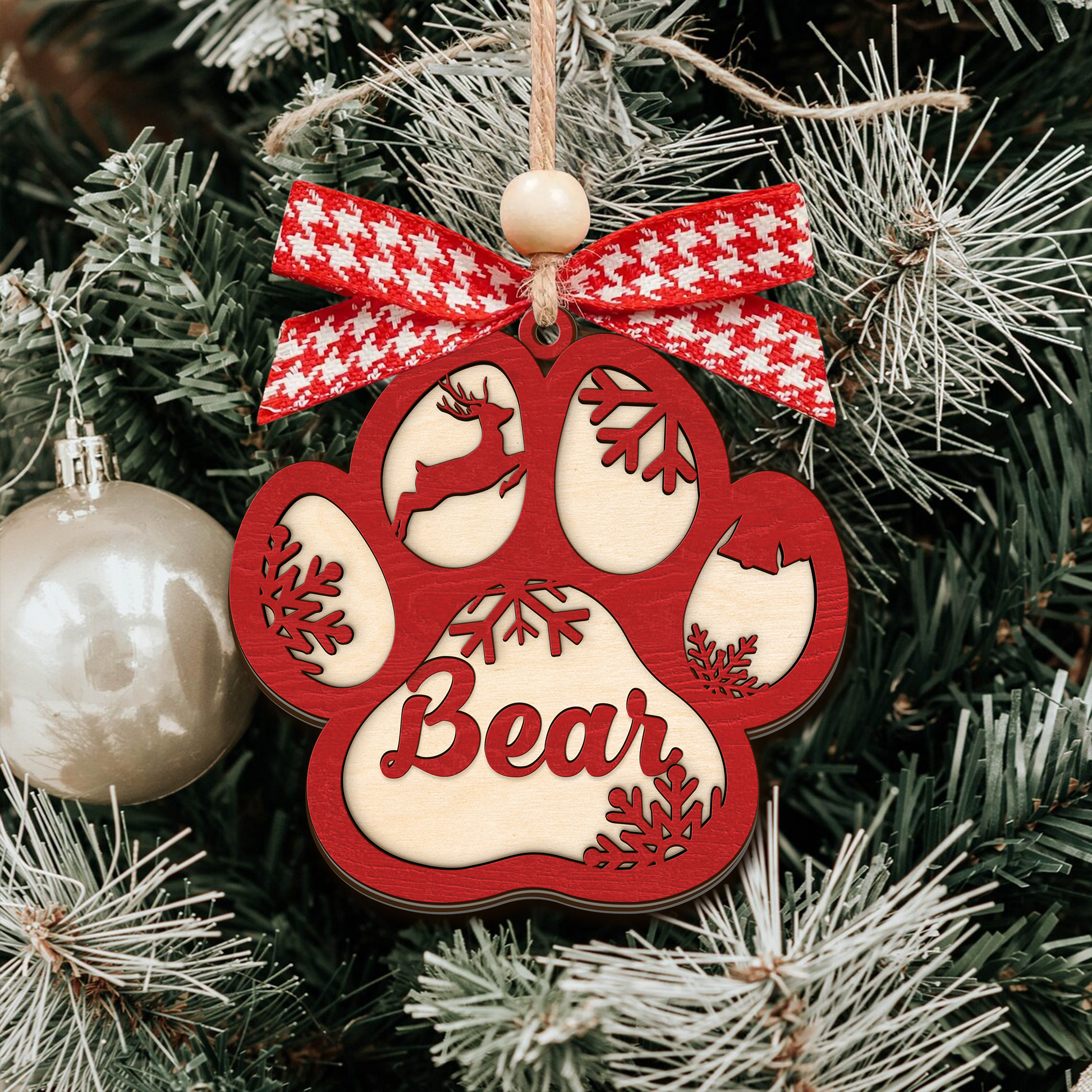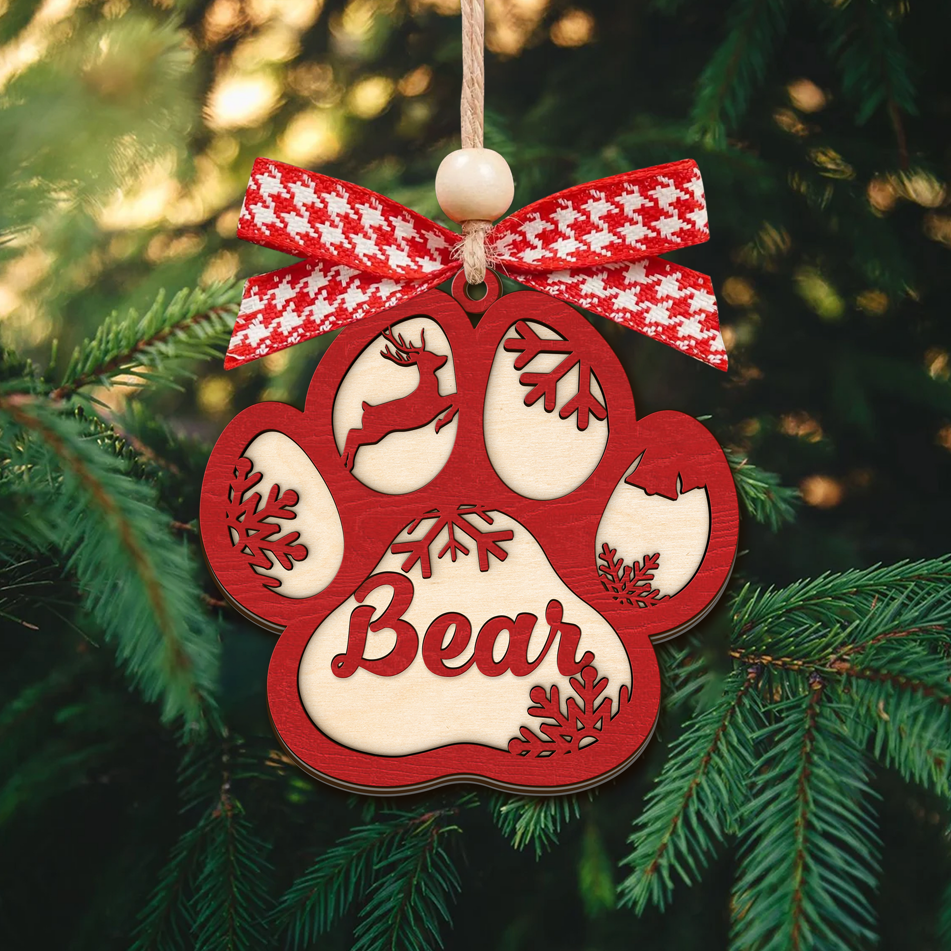 🐾 Personalized 2-Layer Dog Paw Ornament – Custom Pet Christmas Keepsake 🎄