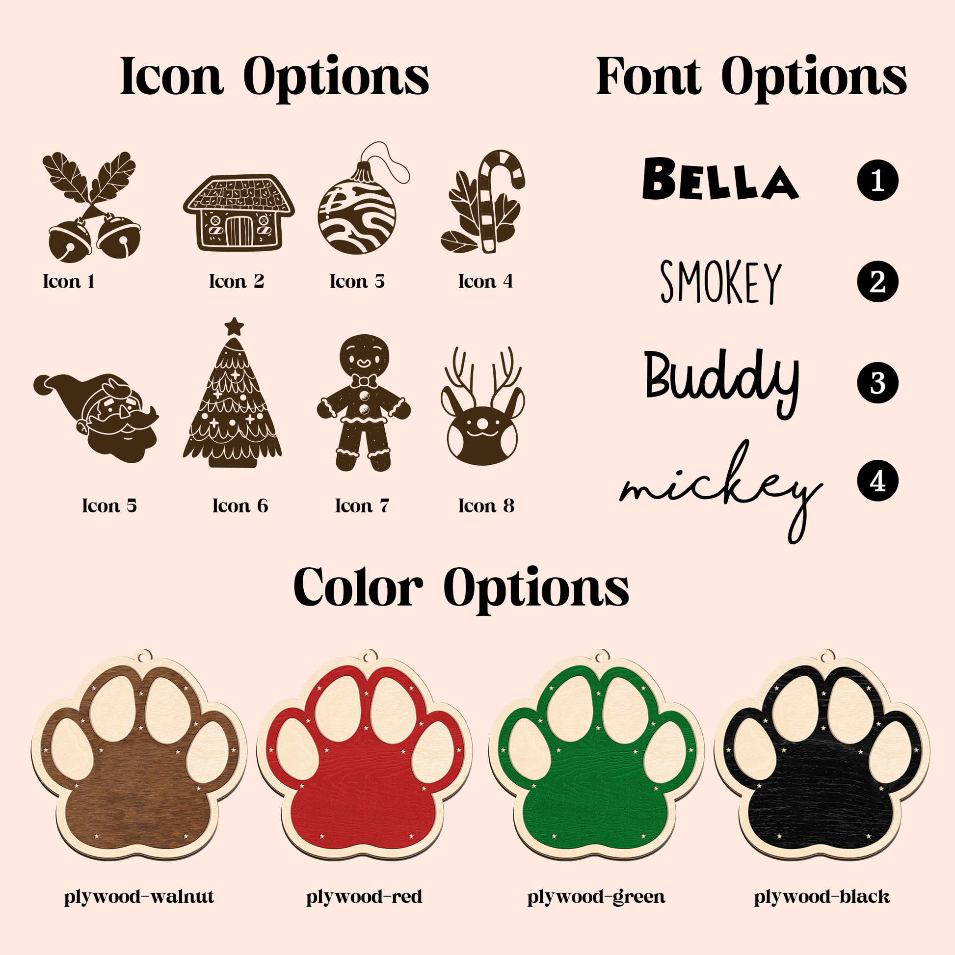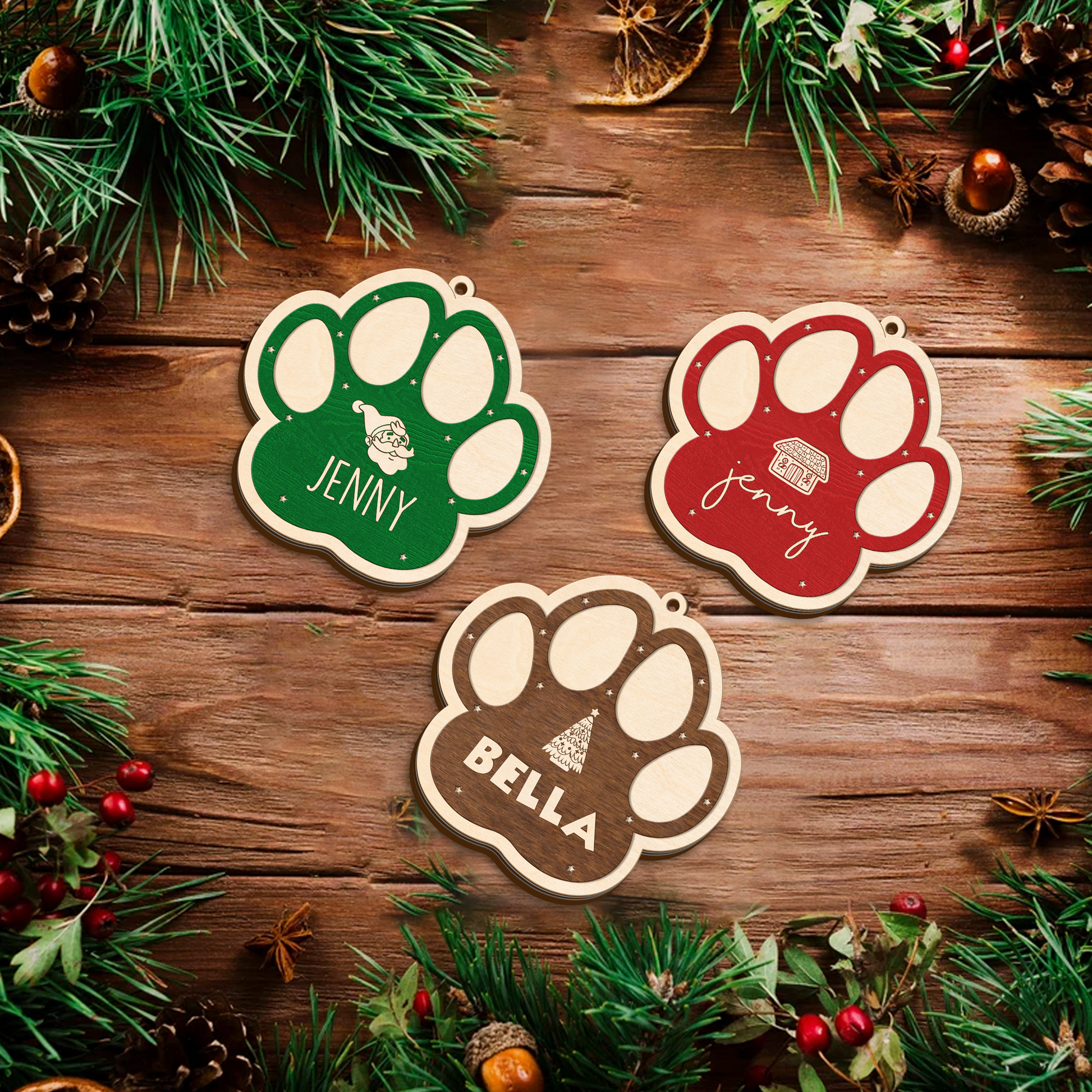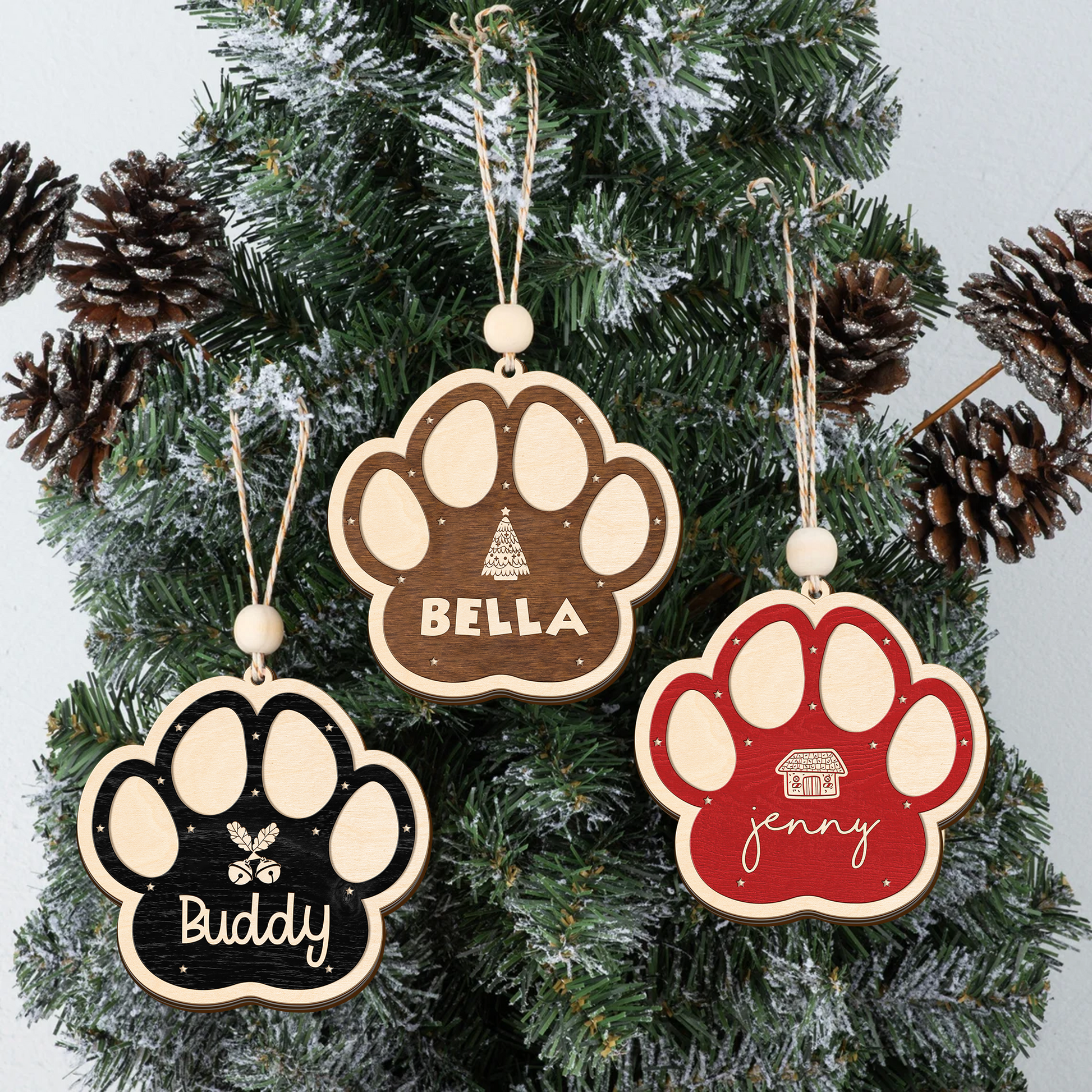 Add a heartwarming touch to your holiday dĆ©cor with our 2-Layer Dog Paw Ornament. Crafted from durable wood and finished with vibrant UV printing, this personalized keepsake is designed to make your Christmas tree extra special. Customize it with your petās name (and icons!) for a one-of-a-kind ornament that celebrates your furry family members.