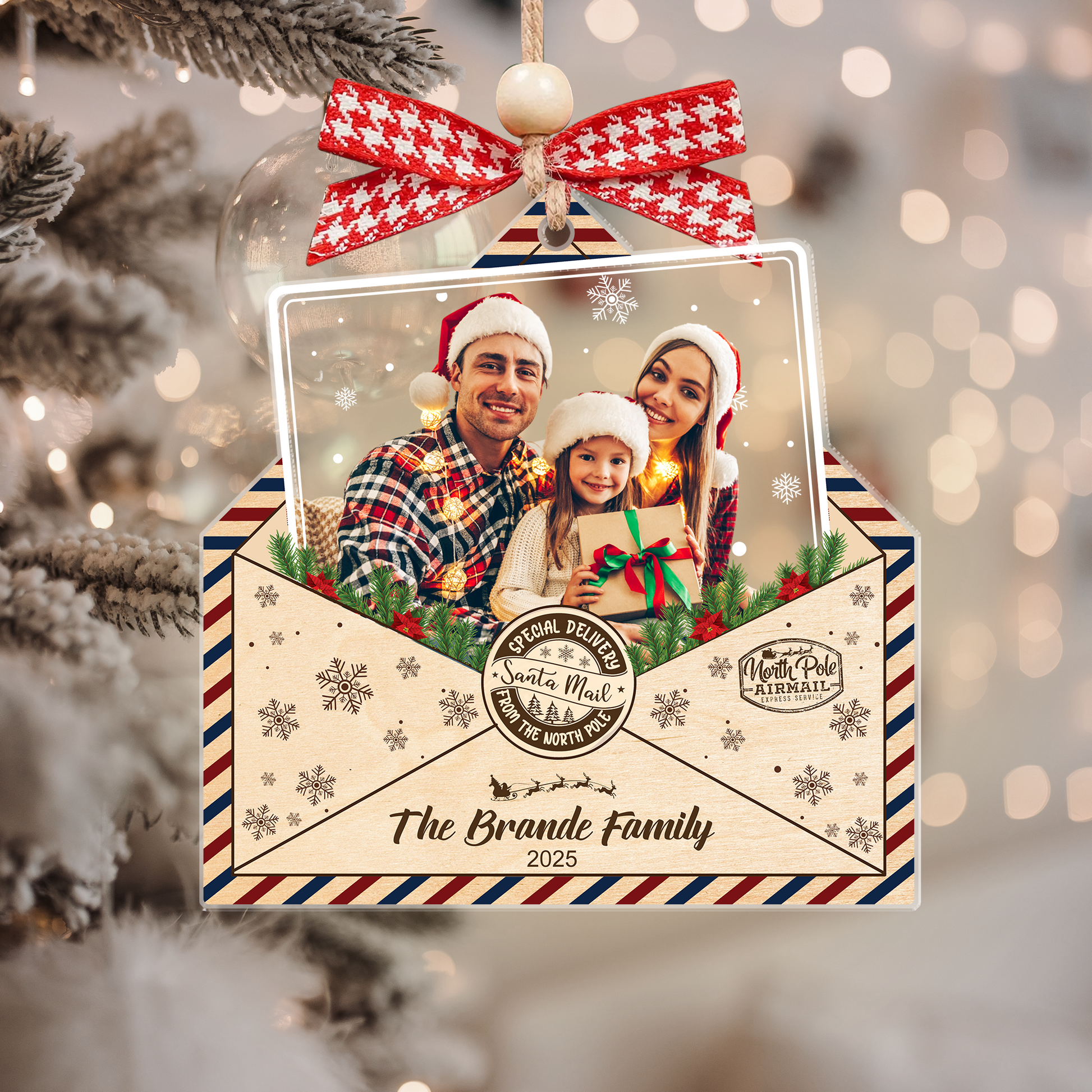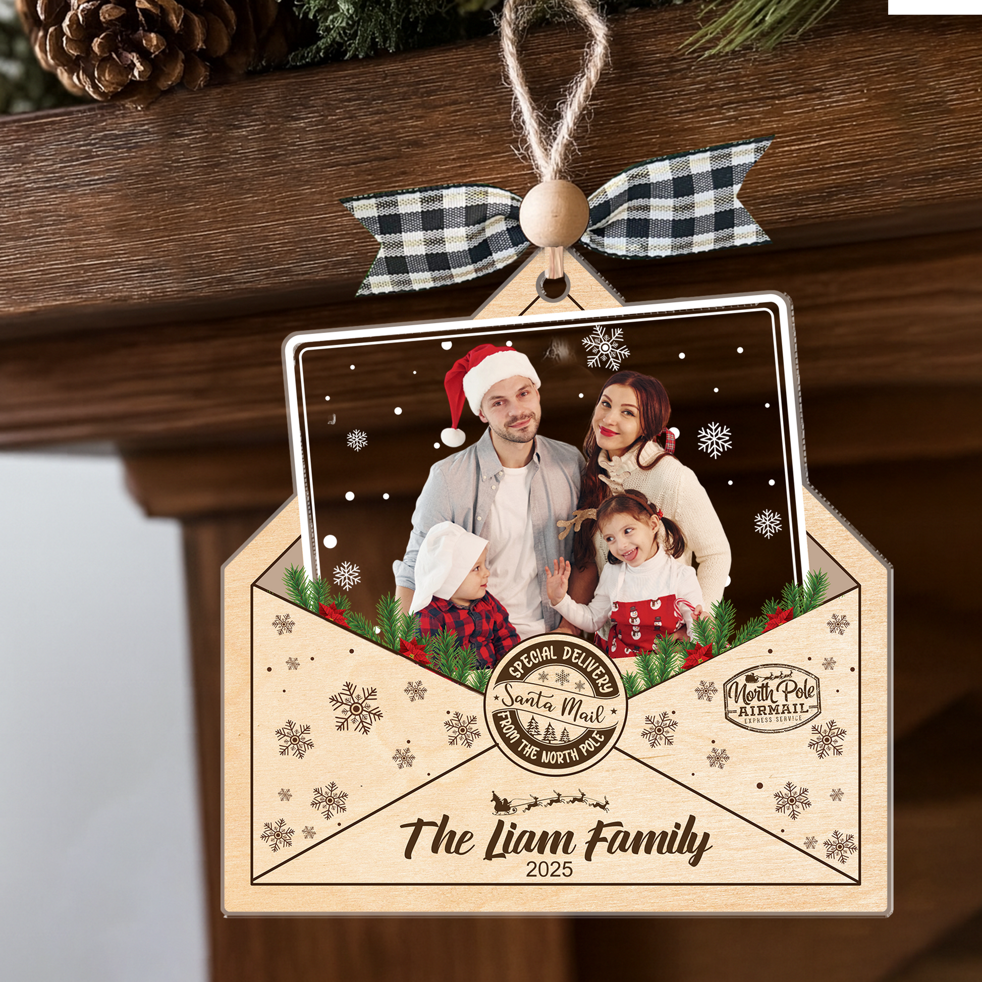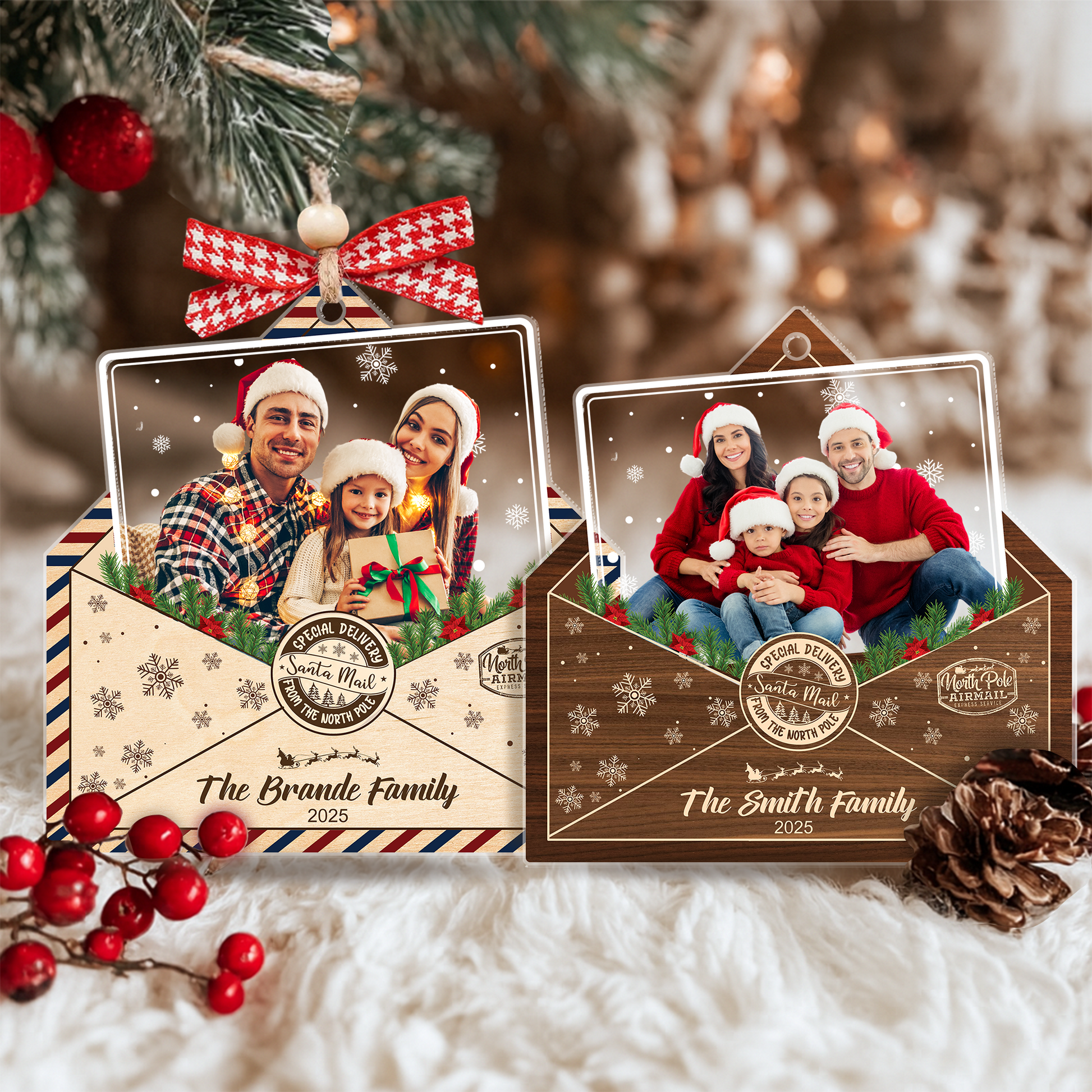 🎄 Personalized Family Photo Ornament 2025 – Custom Envelope Design 🎄