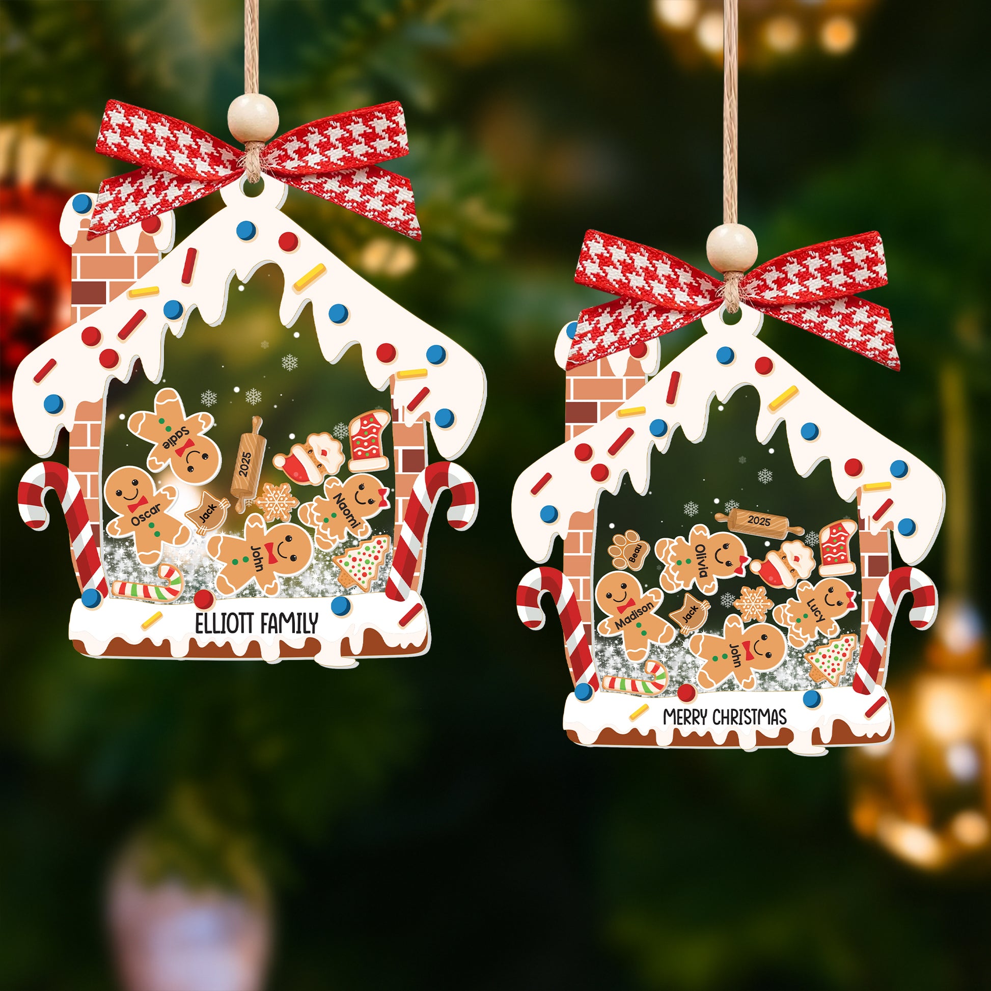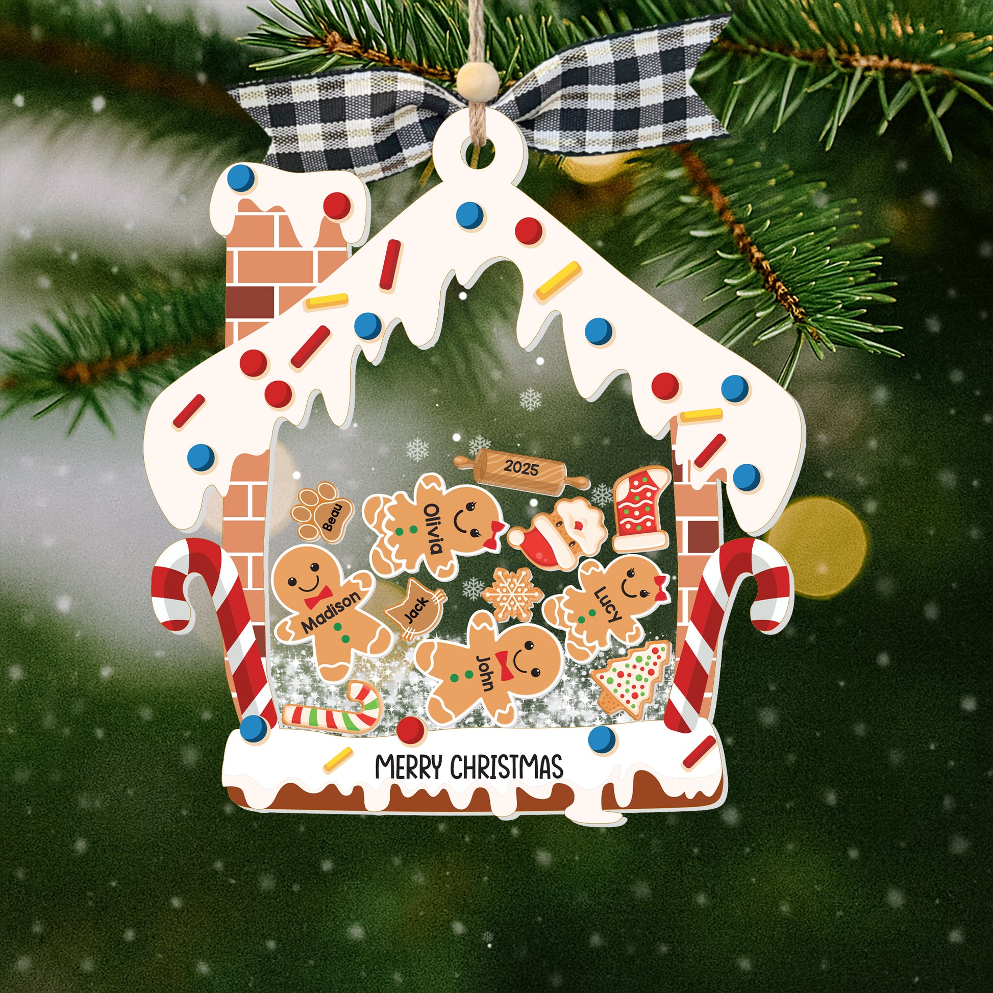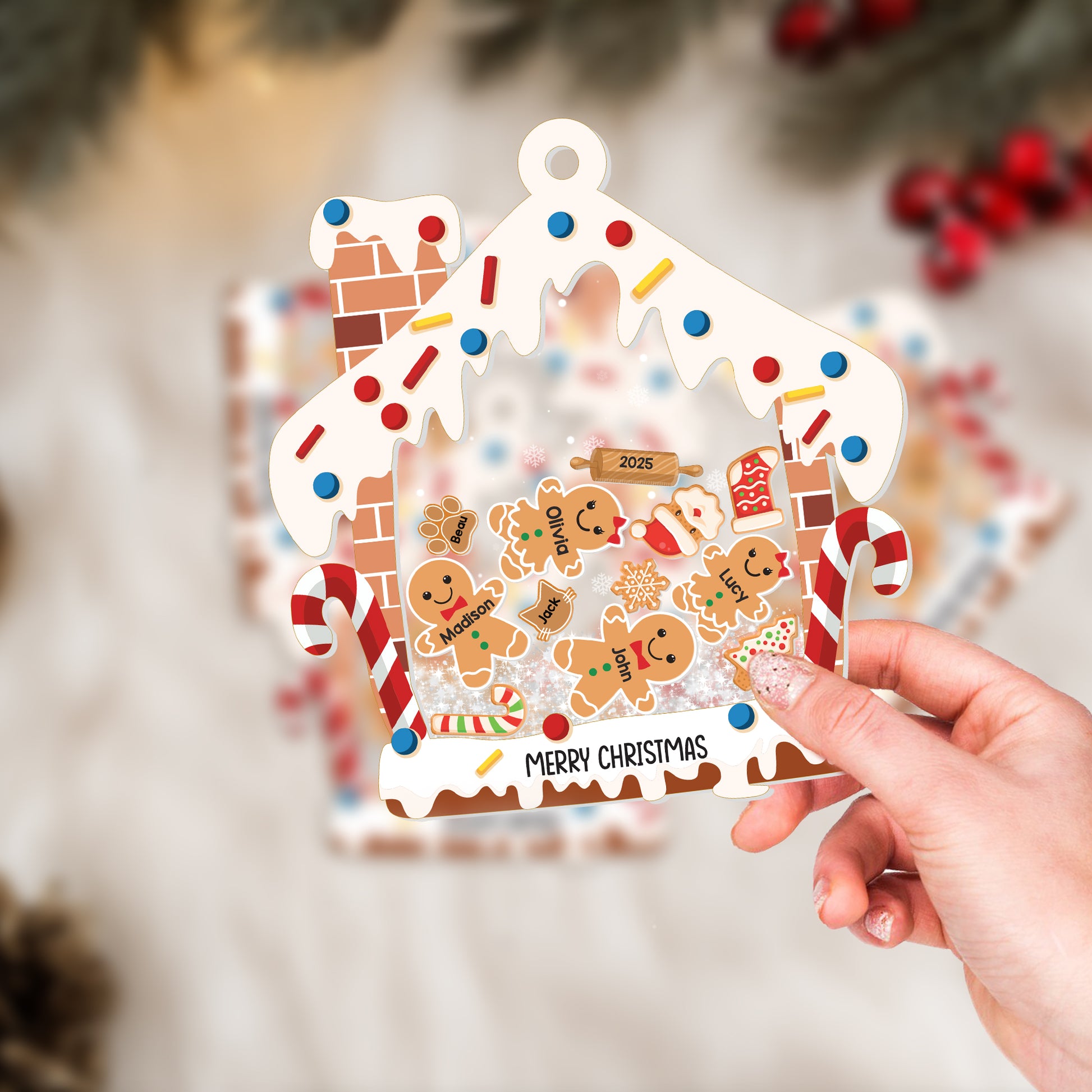 Personalized Gingerbread House Family Ornament with Pets, Custom 4D Shaker Ornament, Christmas Ornament 2025 Gift