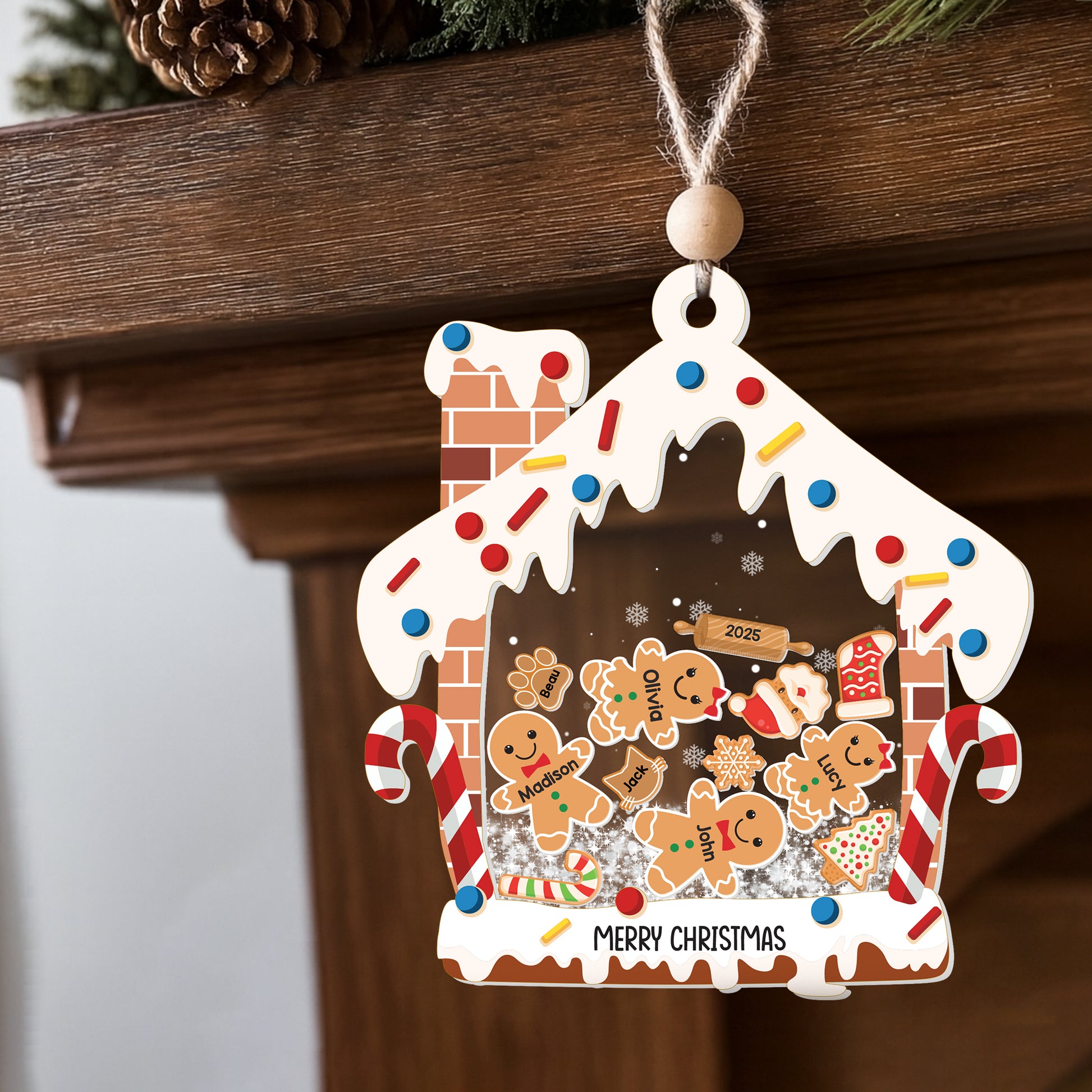 🎄 Personalized Gingerbread House Family Ornament with Pets – 4D Shaker Christmas Keepsake 2025