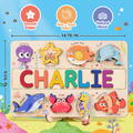 This adorable under-the-sea name puzzle combines your little one’s name with a delightful ocean adventure. Each sea creature invites sensory exploration through sound, texture, and movement — helping toddlers develop fine motor skills, imagination, and emotional connection through play.