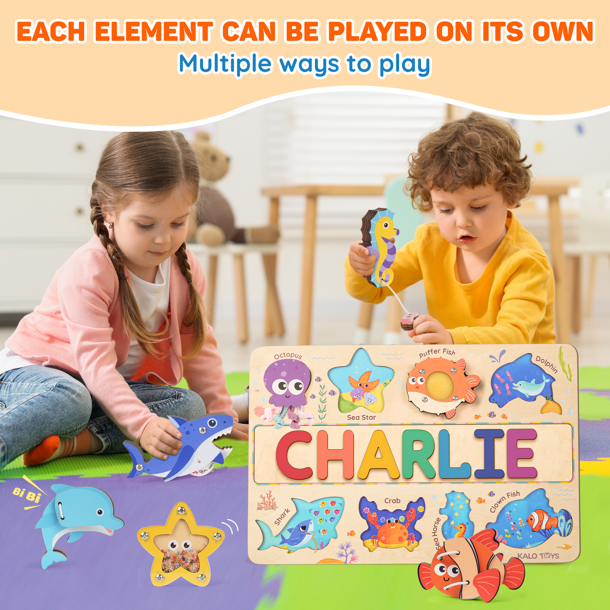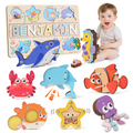 Personalized Ocean Animal Name Puzzle Board, Montessori Sensory Toy for Toddlers