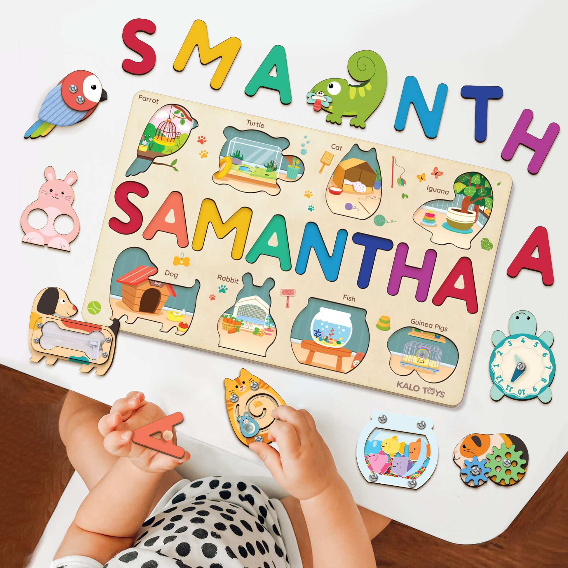 Personalized Pet-Themed Name Puzzle Board, Montessori Sensory Toy for Toddlers NP55