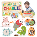 Animal Name Puzzle for Kids, Wooden Toddler Puzzle with Story-Themed Elements, Custom Gifts For 1-3 Year Old, Nursery Decor NP53