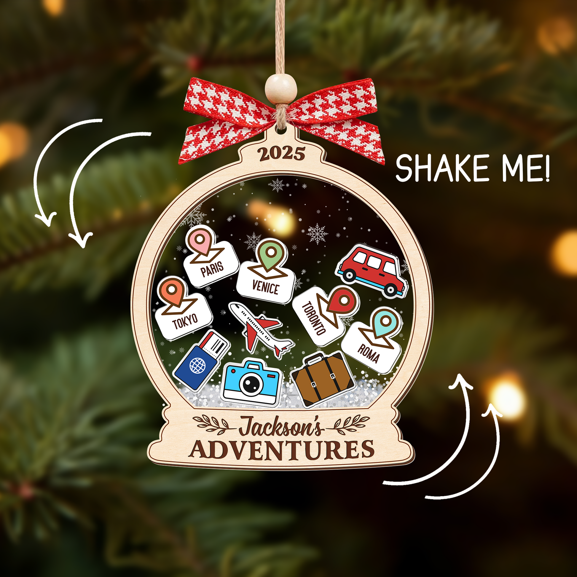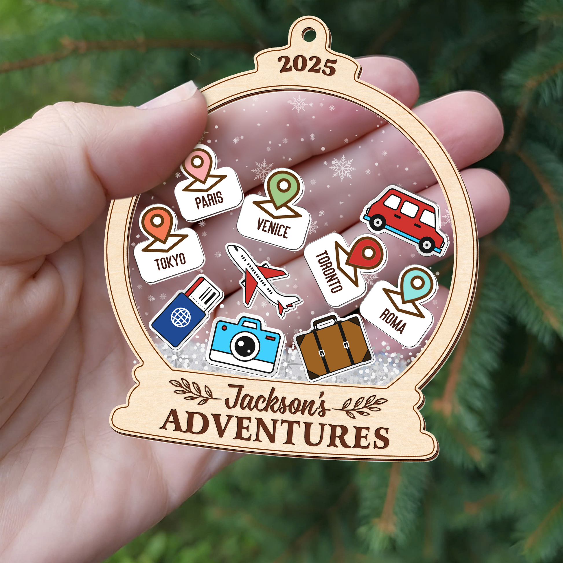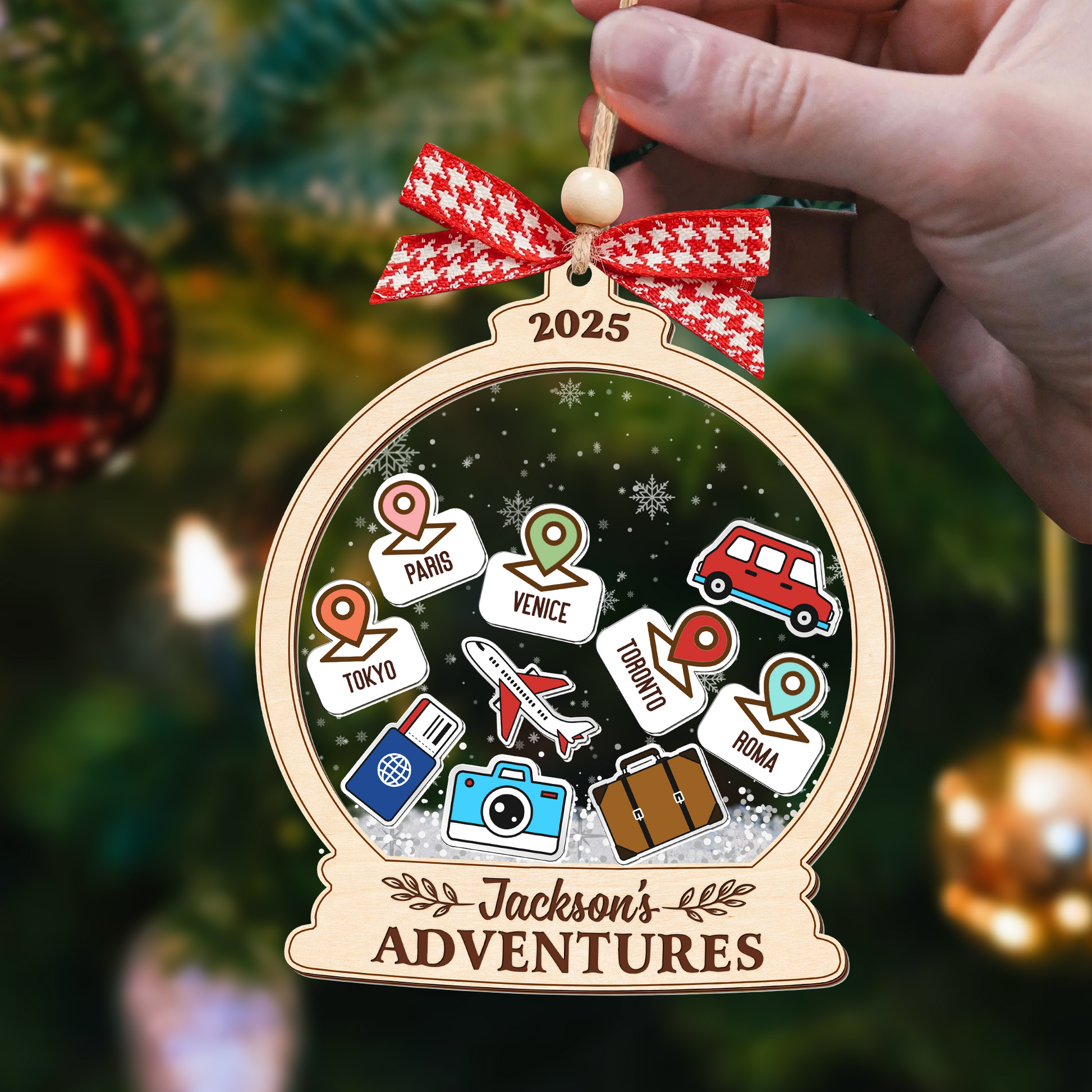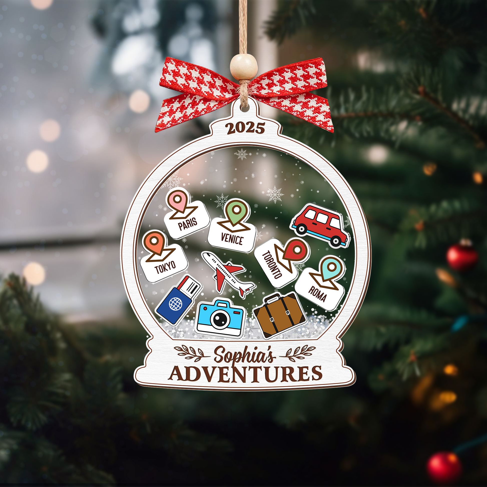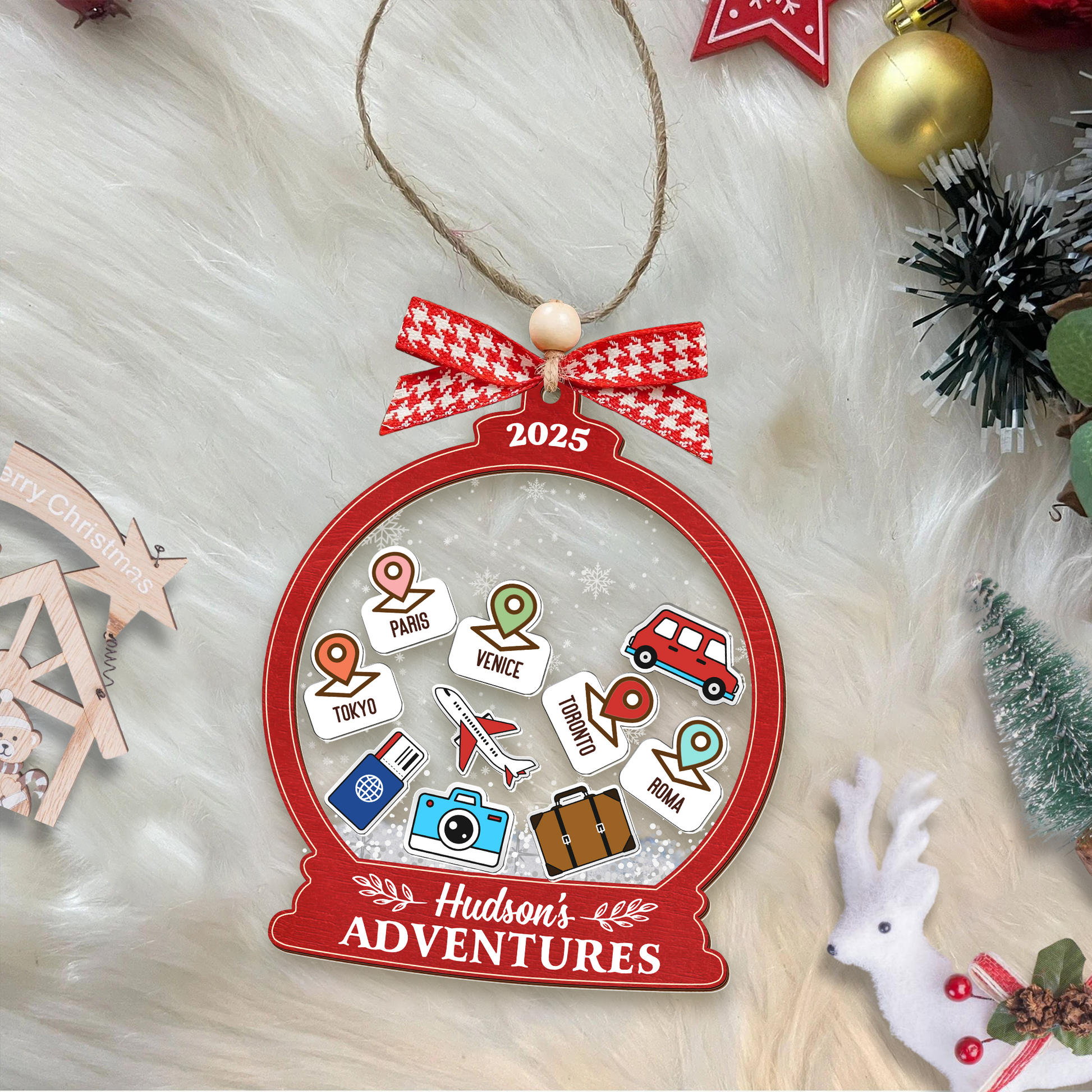 Personalized Travel Ornament 2025, Custom 4D Travel Shaker Ornament, Christmas Ornament for Traveler Holiday Gift "
