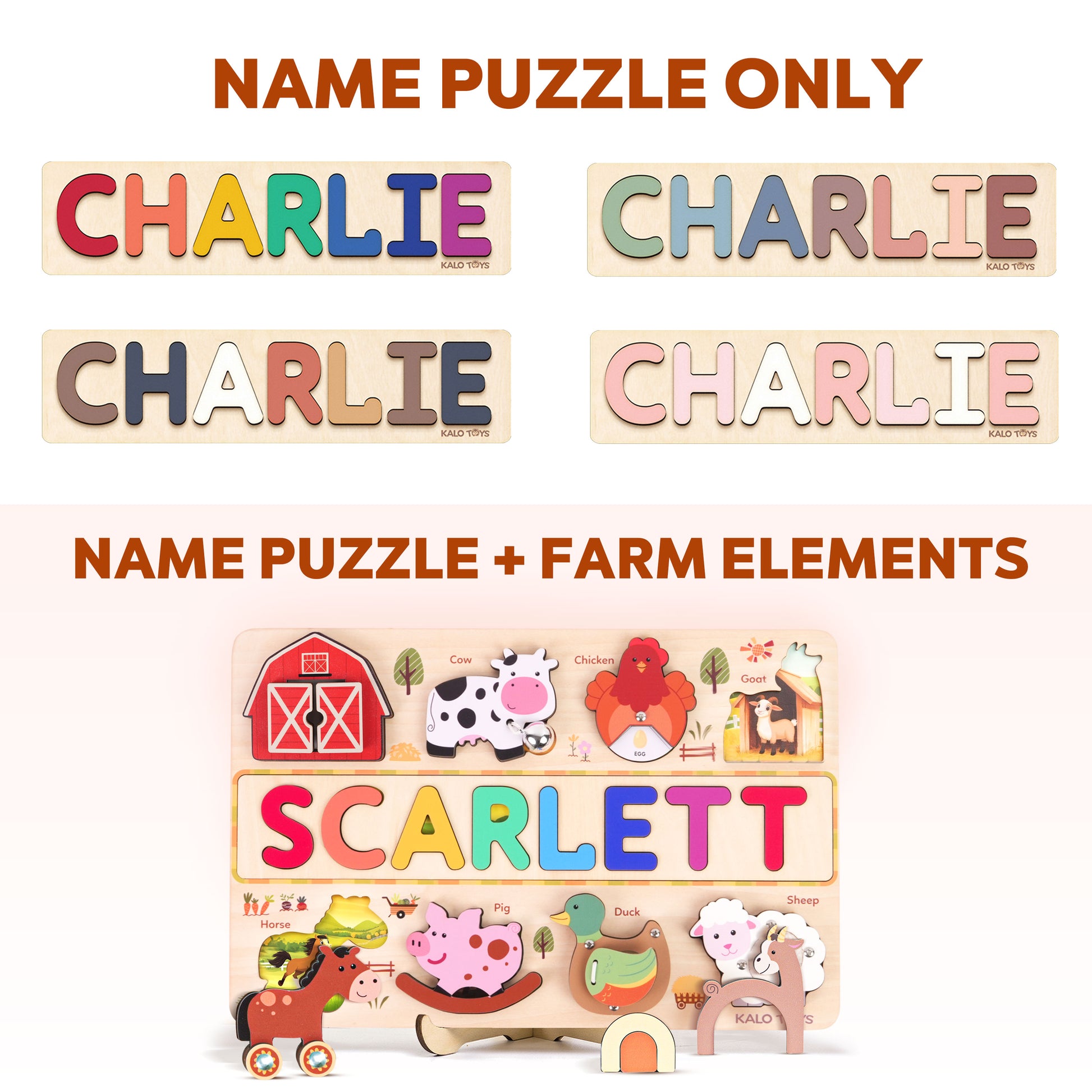 Personalized Wooden Name Puzzle – Farm Animal Sensory Toy for Toddlers (1 2 3 Years)