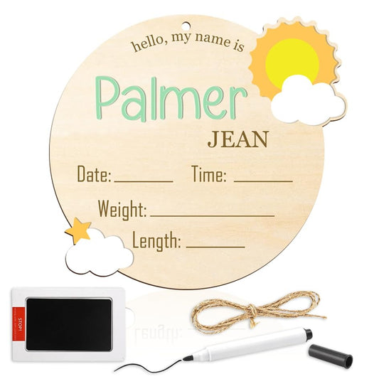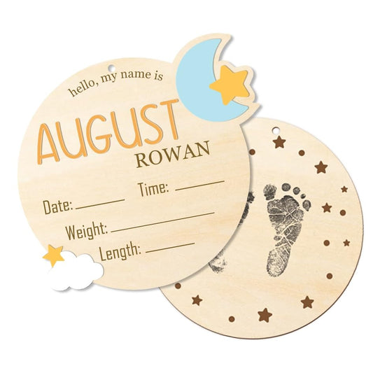 Double Sided Wooden Baby Announcement Sign with Custom Name, Birth Stats, and Footprint Perfect Keepsake for Newborn Hospital Photos, Nursery, and Memory Display BX25