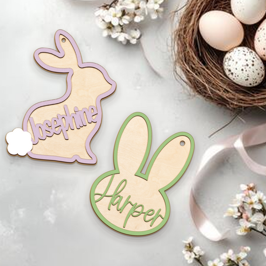 Personalized Easter Tag, Custom Bunny Name Tag, Easter Gift Tag, Easter Basket Tag, Wooden Rabbit Keepsake, Baby Girl Gifts, ET03