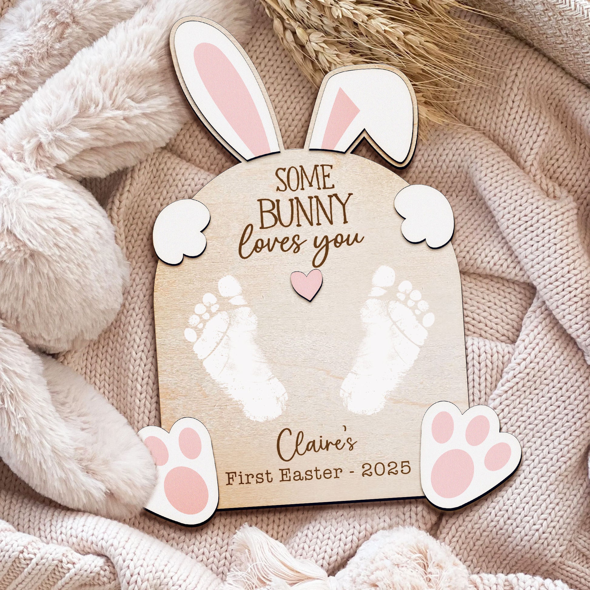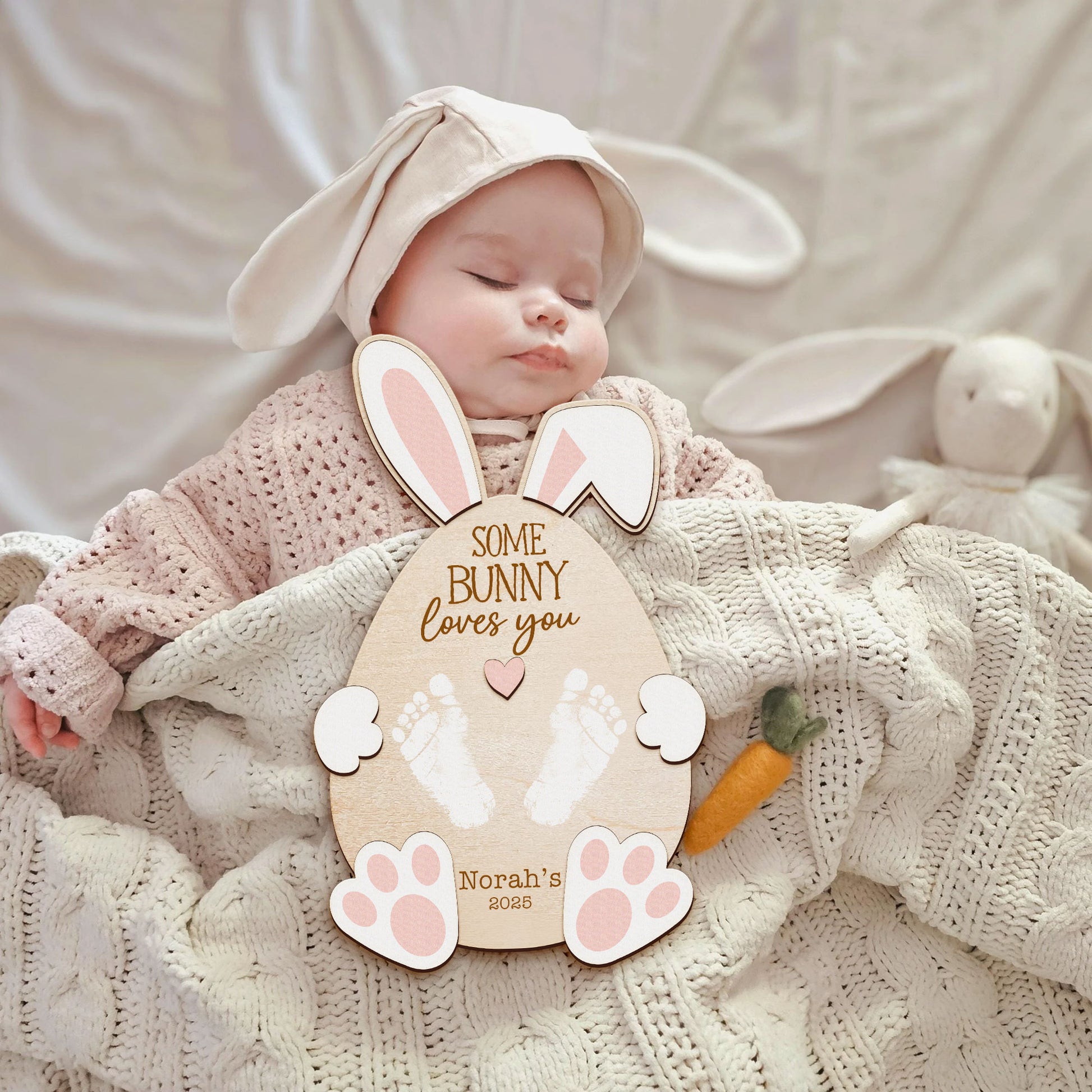 🐰 Personalized Baby’s First Easter Footprint Sign – Cherished Keepsake for Newborns