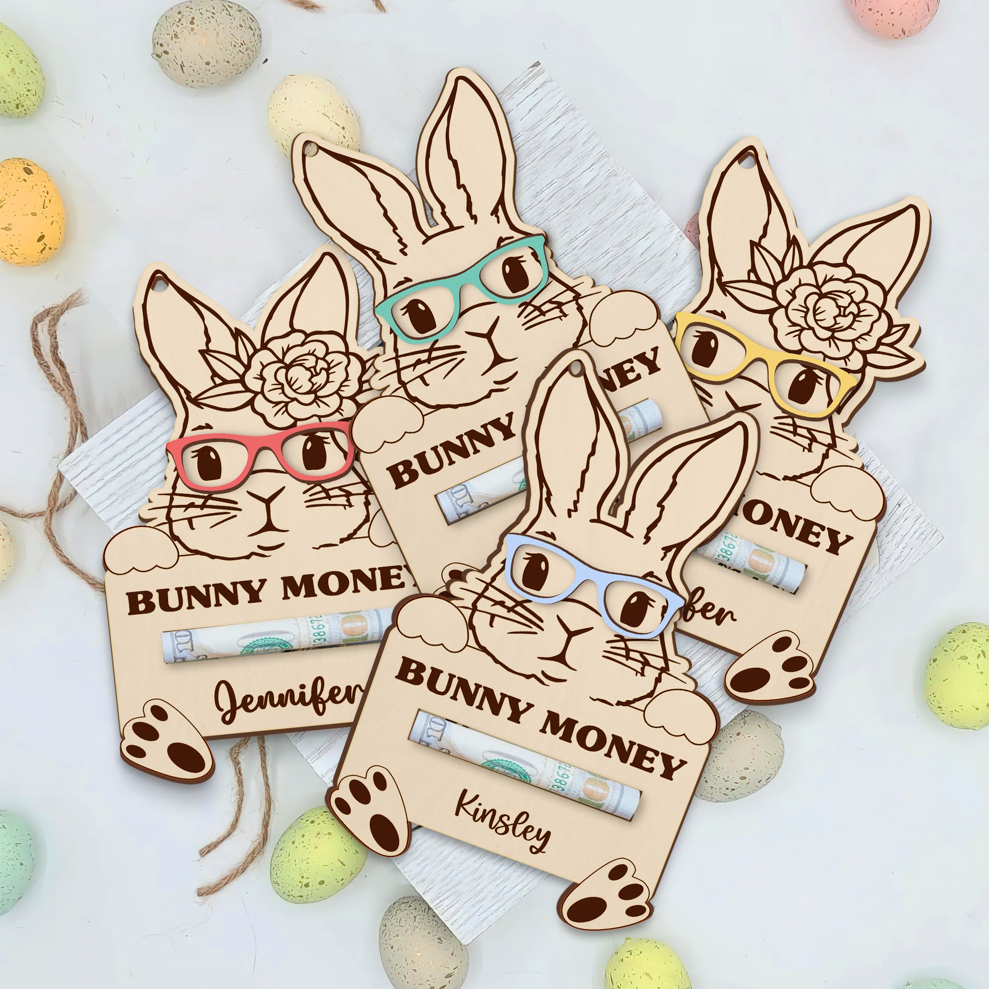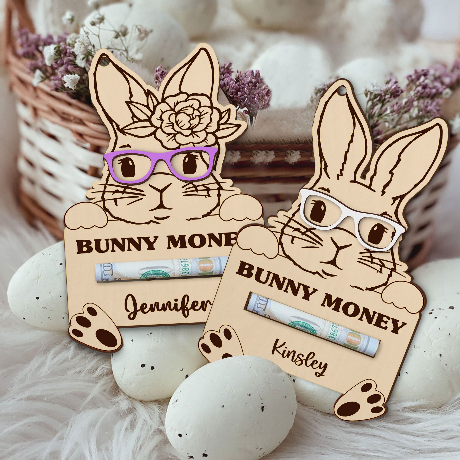 Personalized Easter Bunny Money Holder, Wooden Easter Gifts Idea For Kids MH04