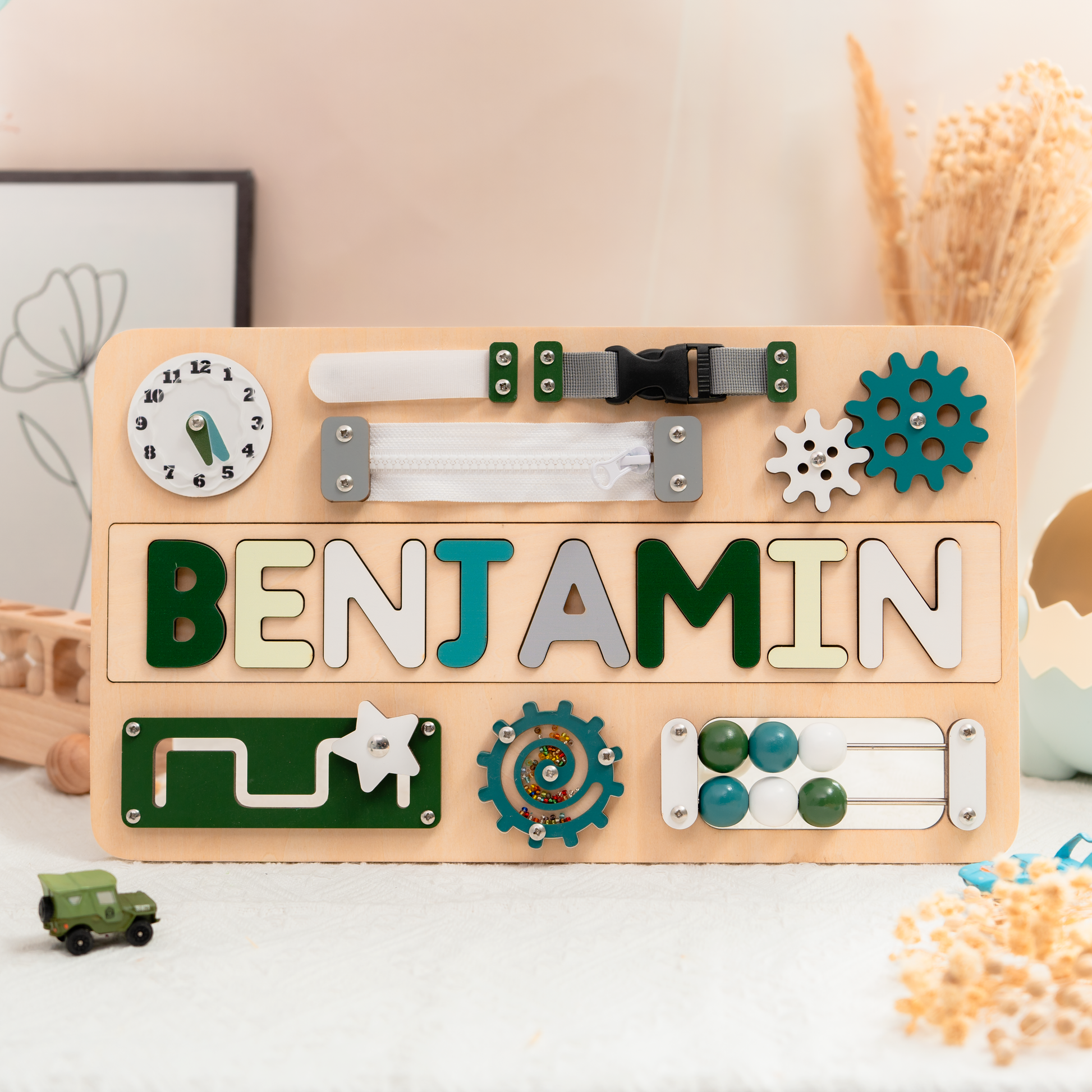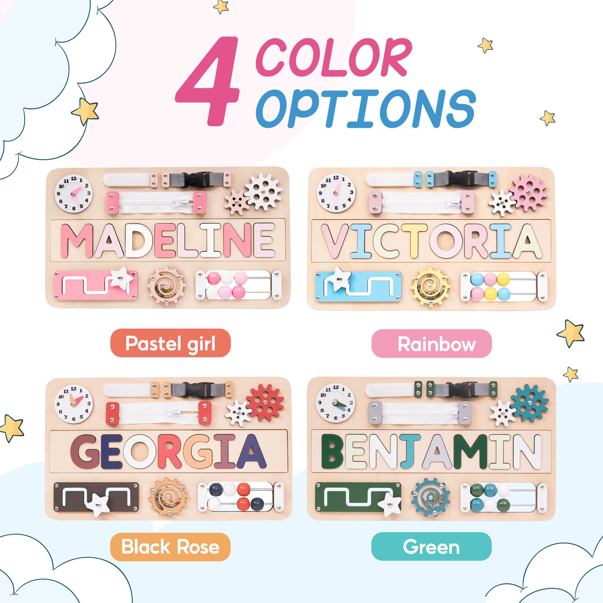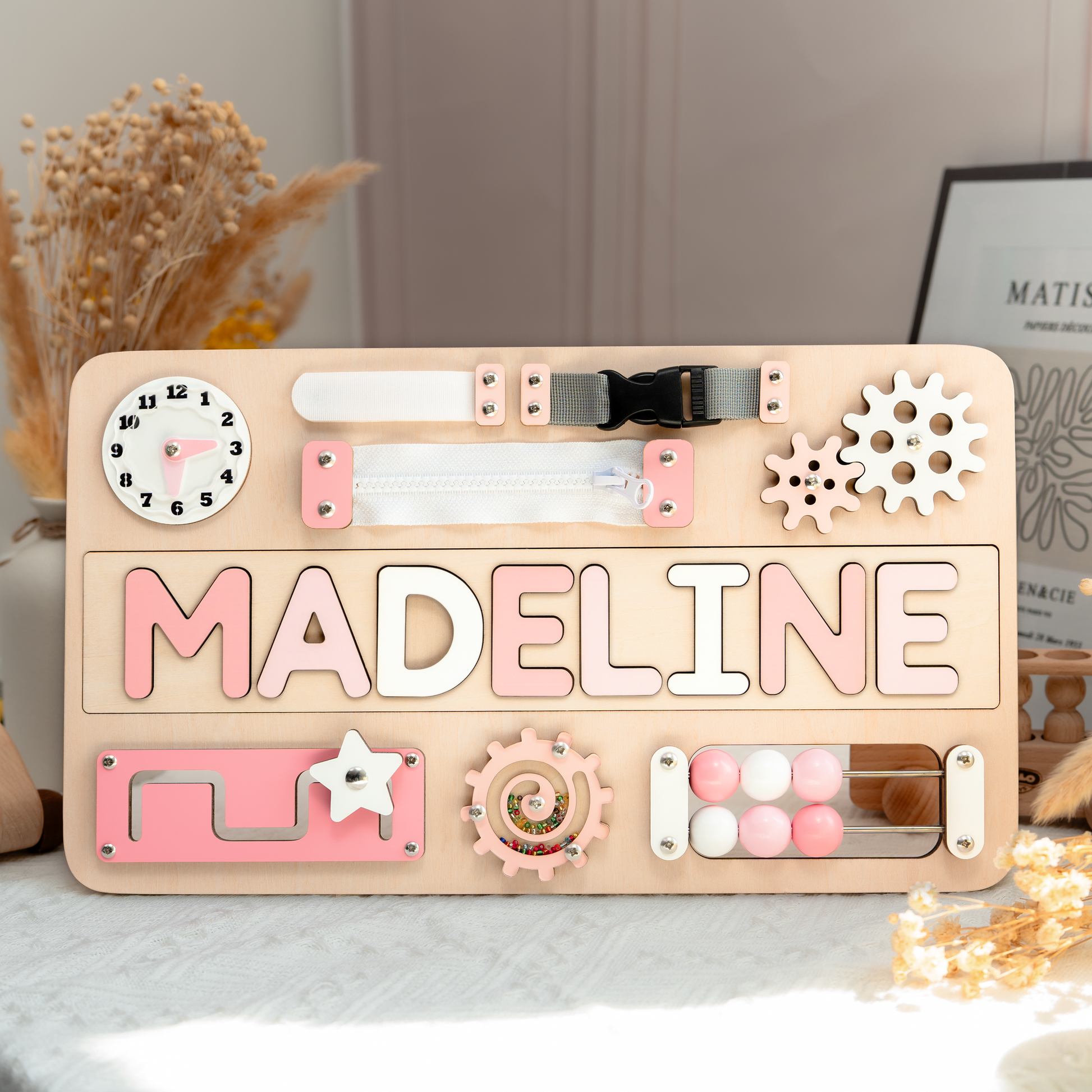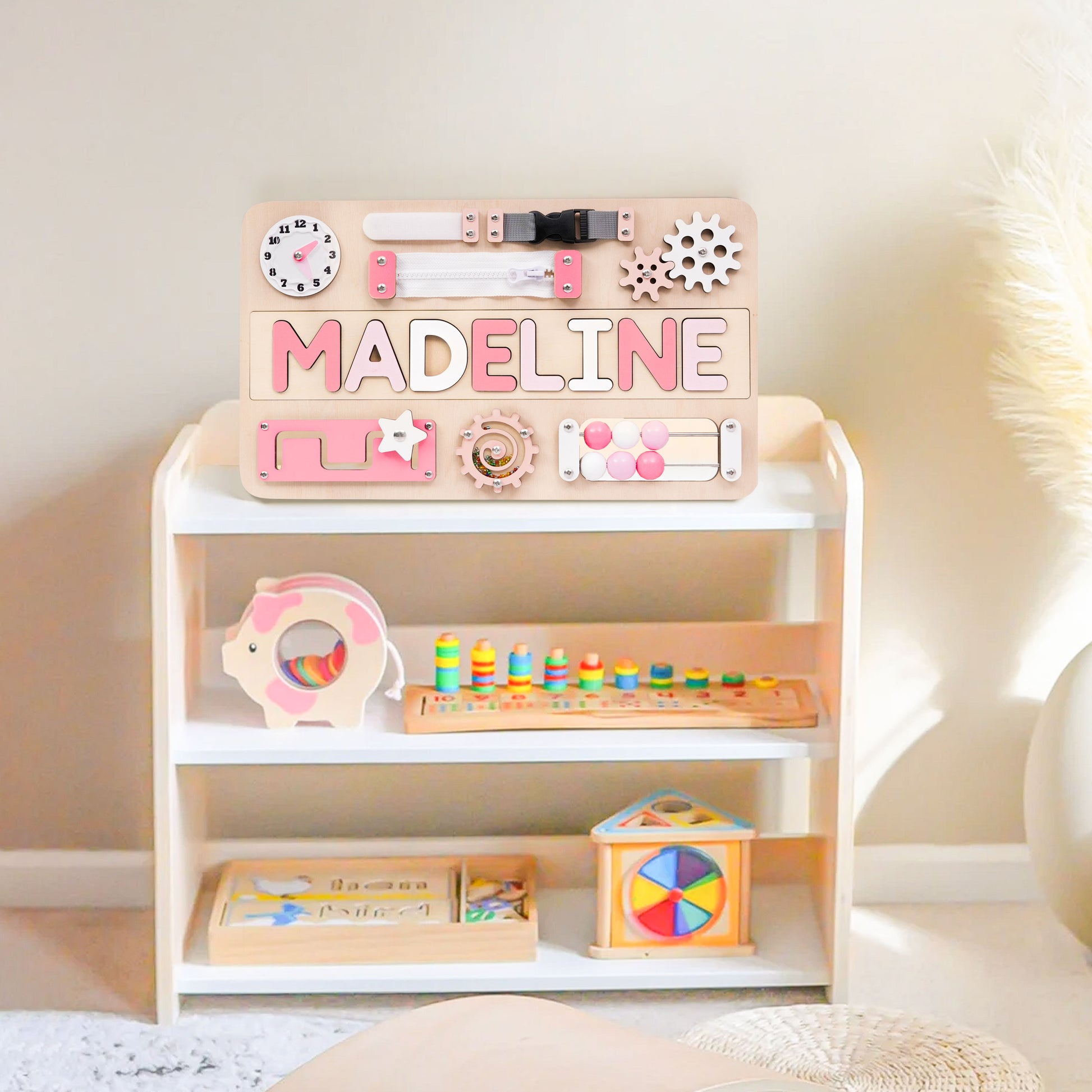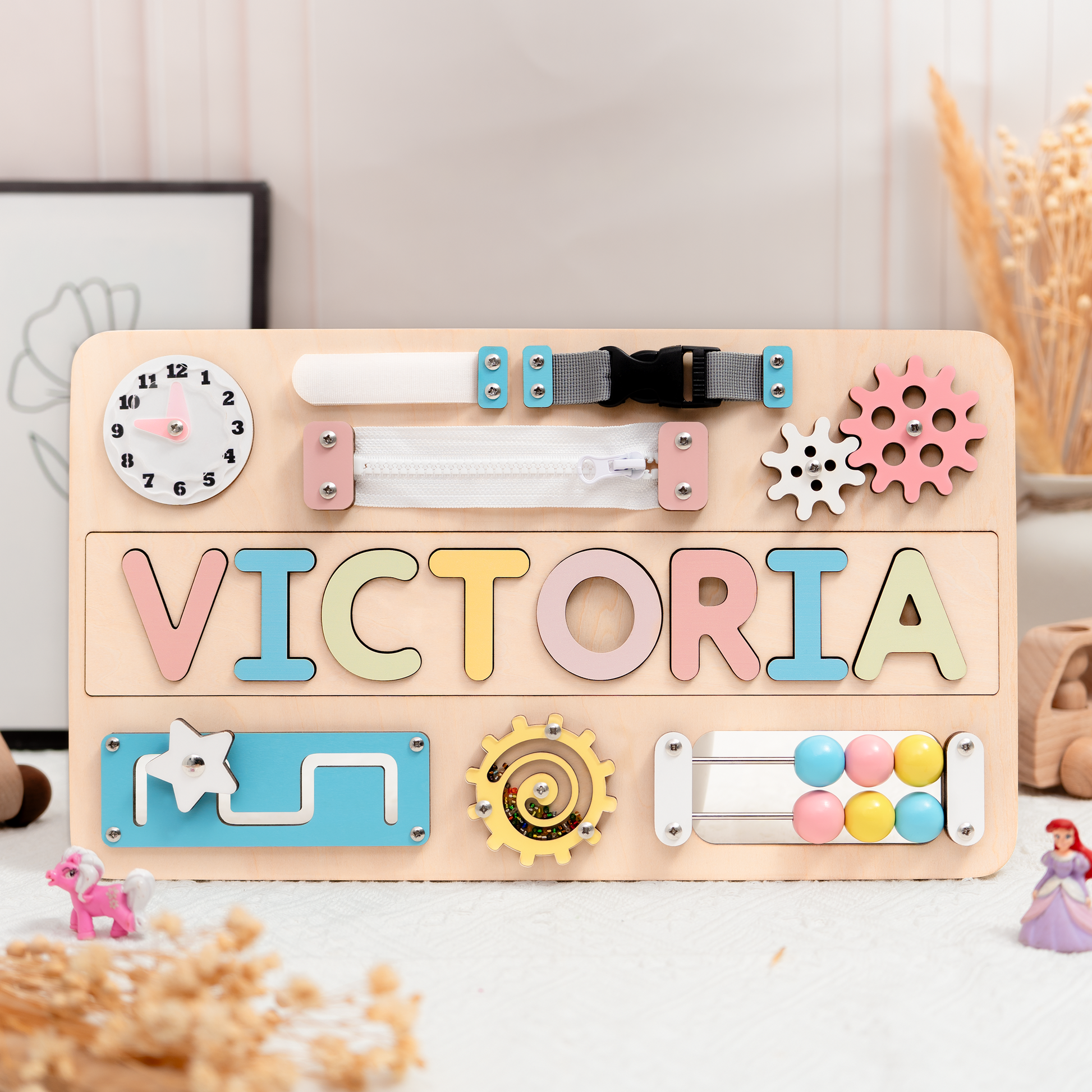 Personalized Wooden Busy Board Name Puzzle - Educational Toy for Toddlers
