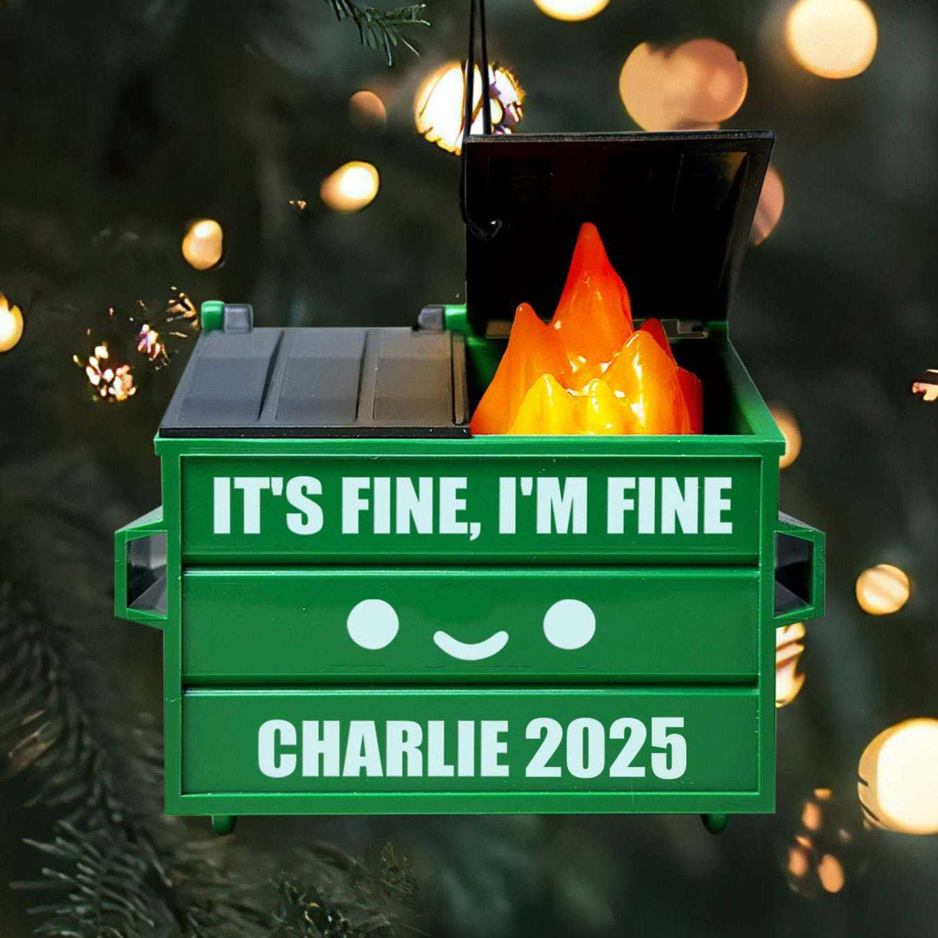- 2025 is literally a dumpster fire. What better way to commemorate it than on your Christmas tree? Or your rearview mirror? Or literally anywhere?
