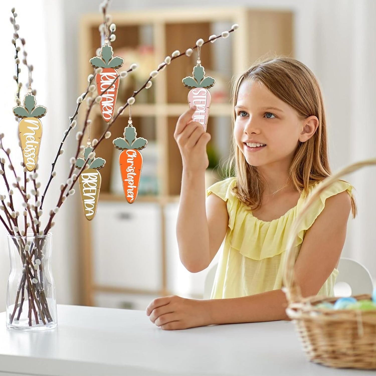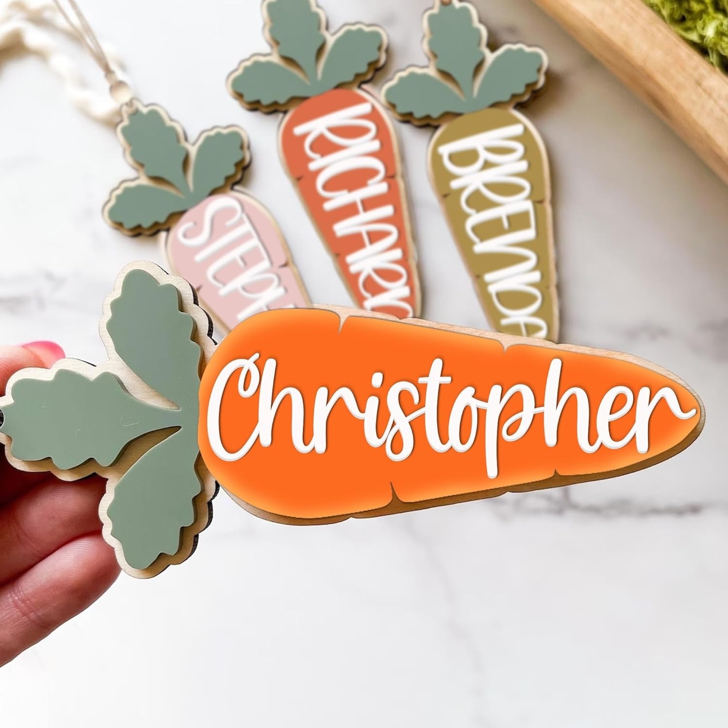 Celebrate Easter with these delightful personalized wooden carrot-shaped tags! Perfect for Easter baskets, gift bags, or festive decorations, these custom tags add a colorful and personal touch to your holiday.