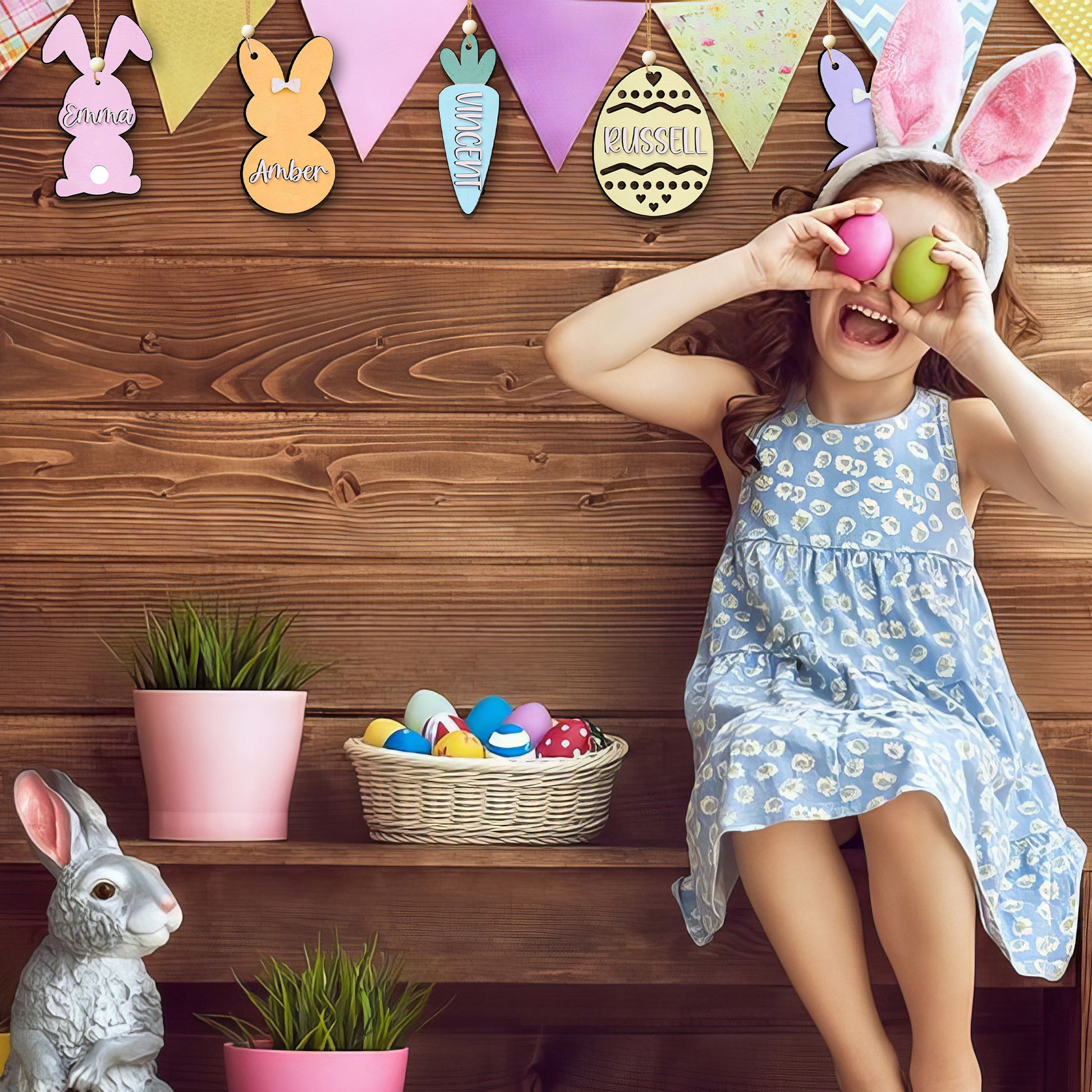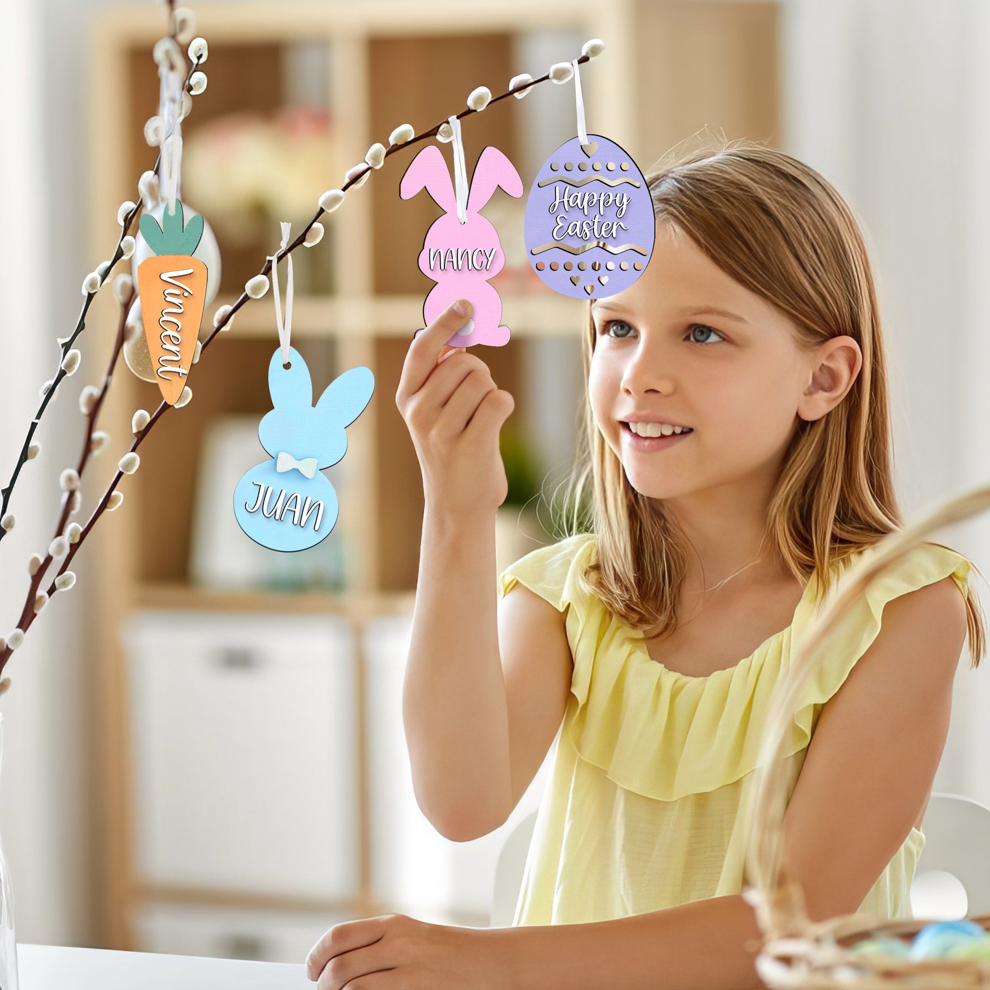 Make this Easter extra special with our custom wooden basket tags, perfect for adding a personal touch to your holiday celebrations! These beautifully crafted tags come in delightful bunny, egg, and carrot shapes, making them a charming addition to Easter baskets, gifts, and festive décor.