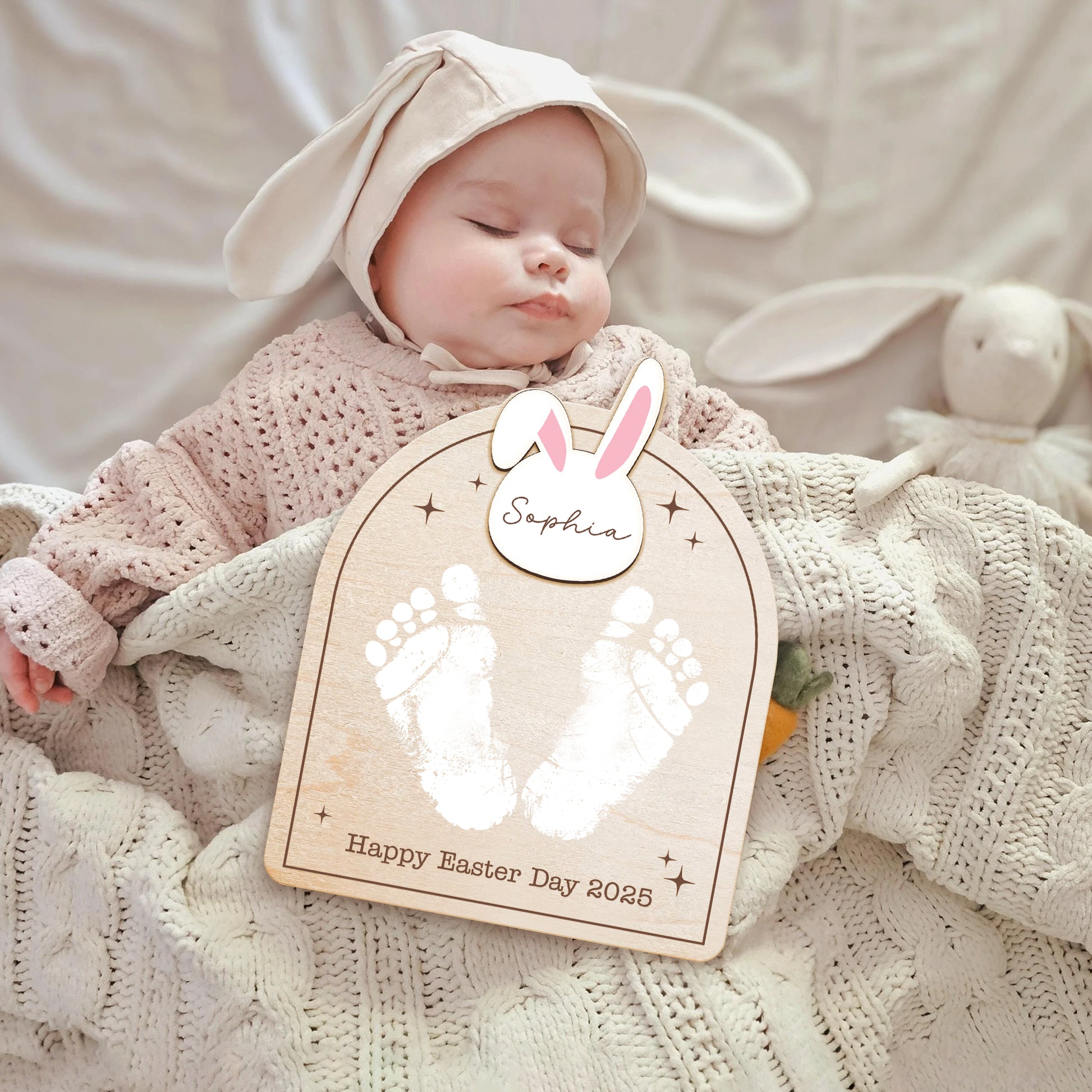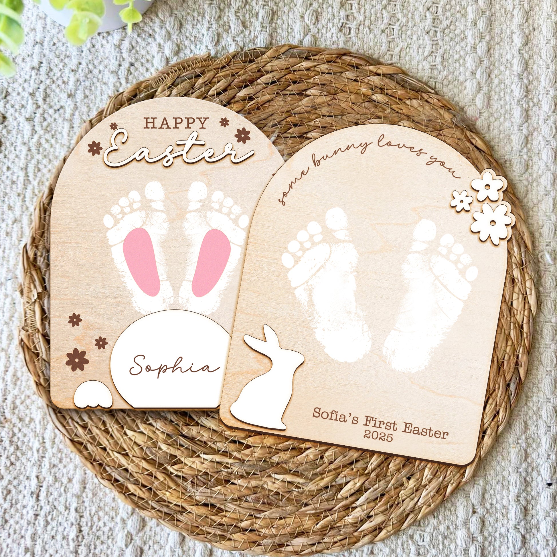 🐰 Personalized Baby’s First Easter Footprint Sign – Cherished Keepsake for Newborns