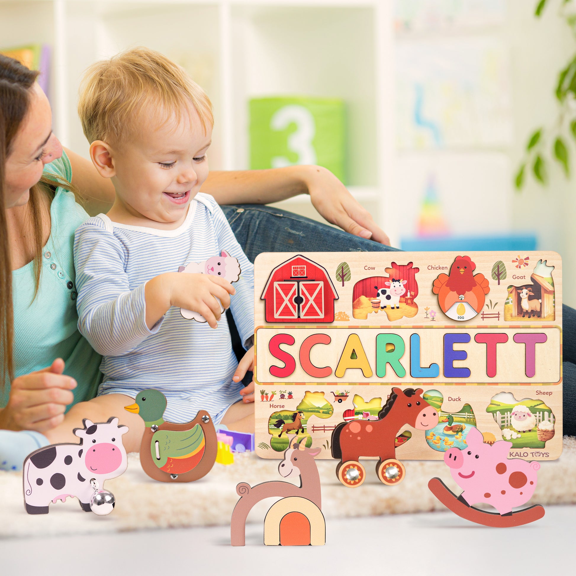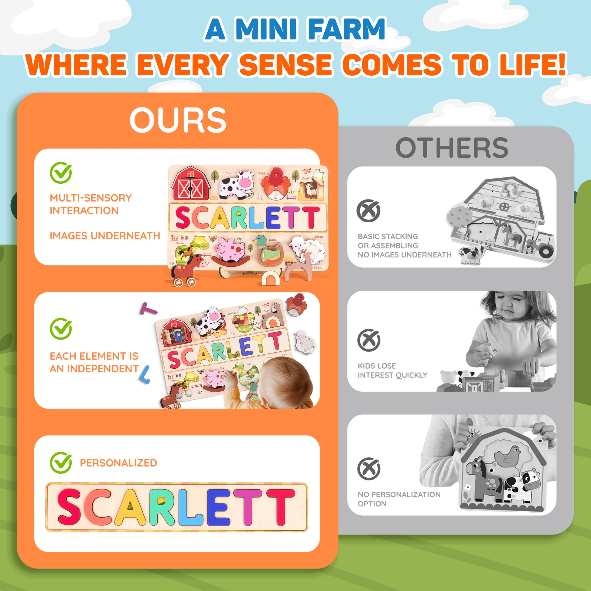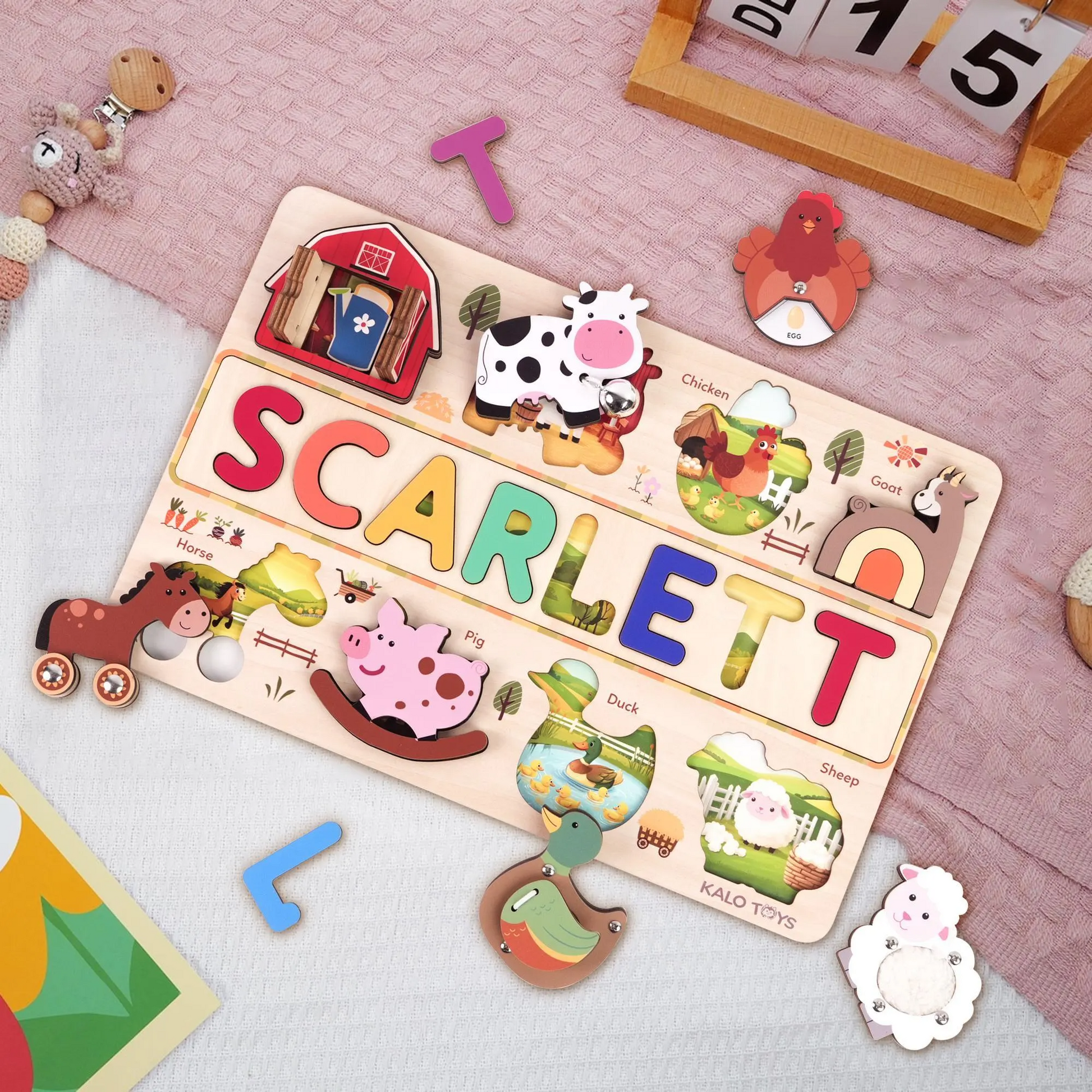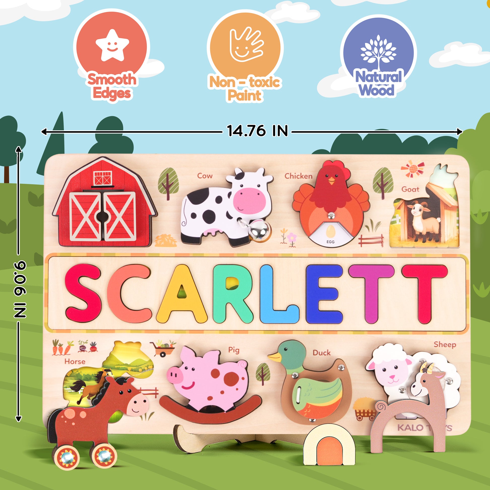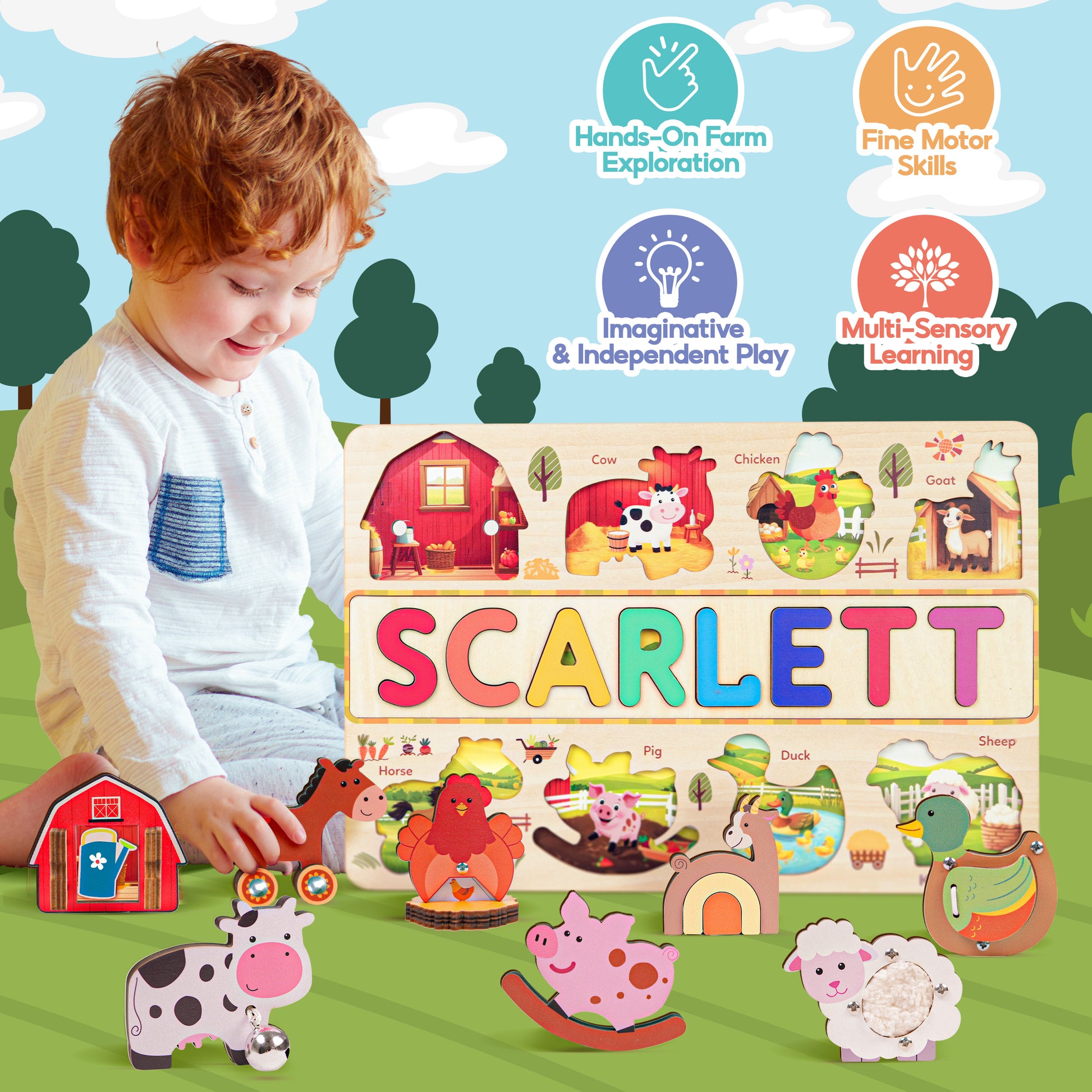 Personalized Wooden Name Puzzle – Farm Animal Sensory Toy for Toddlers (1 2 3 Years)