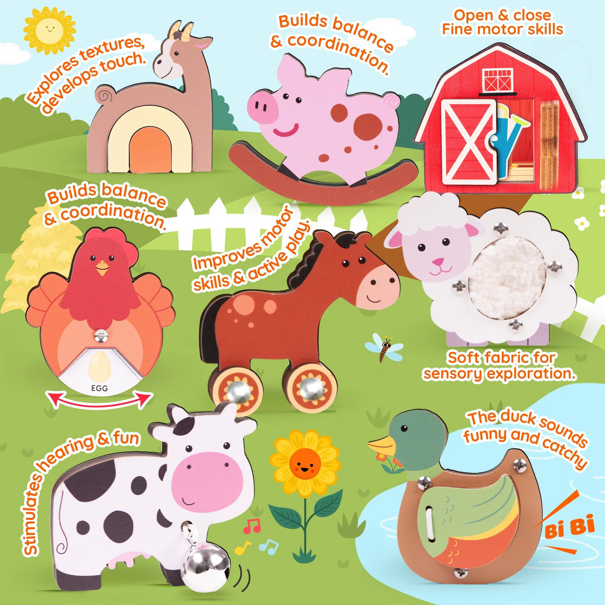 🐮 Farm-Themed Sensory Adventure: Under each name piece lies a beautifully illustrated animal habitat, encouraging storytelling and curiosity about the world around them.