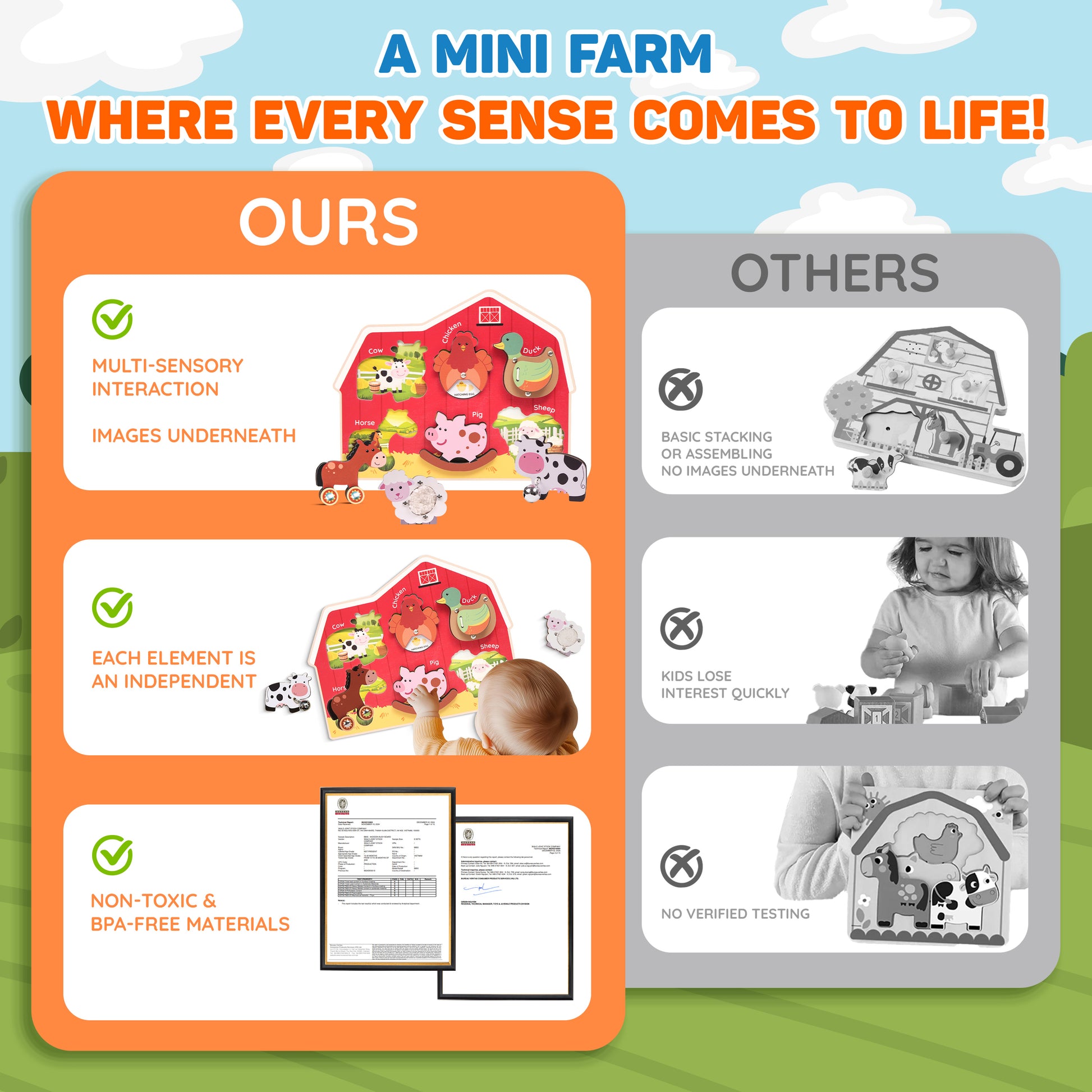 Each animal can be removed and played with on its own — helping toddlers explore freely while developing creativity and storytelling skills. -