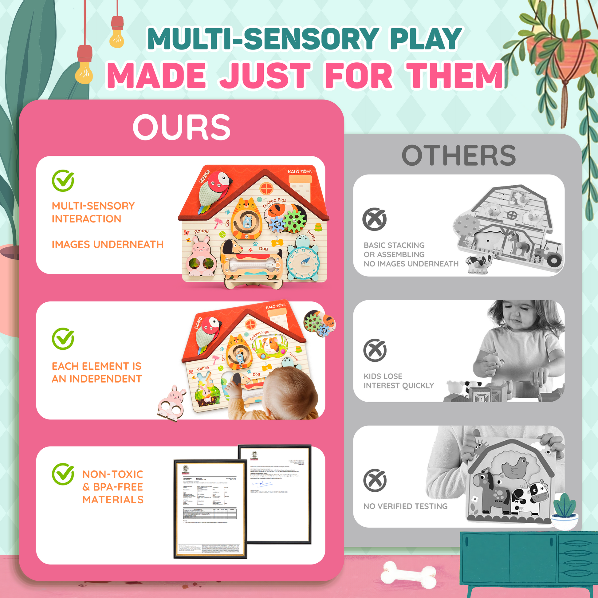 Wooden Pet House Sensory Puzzle Toy - Montessori Learning Toy for Toddlers (Ages 1–3)